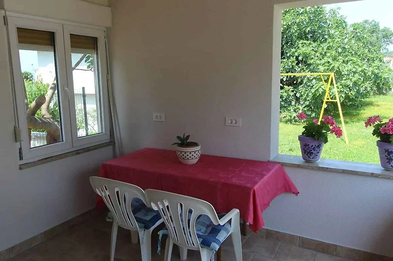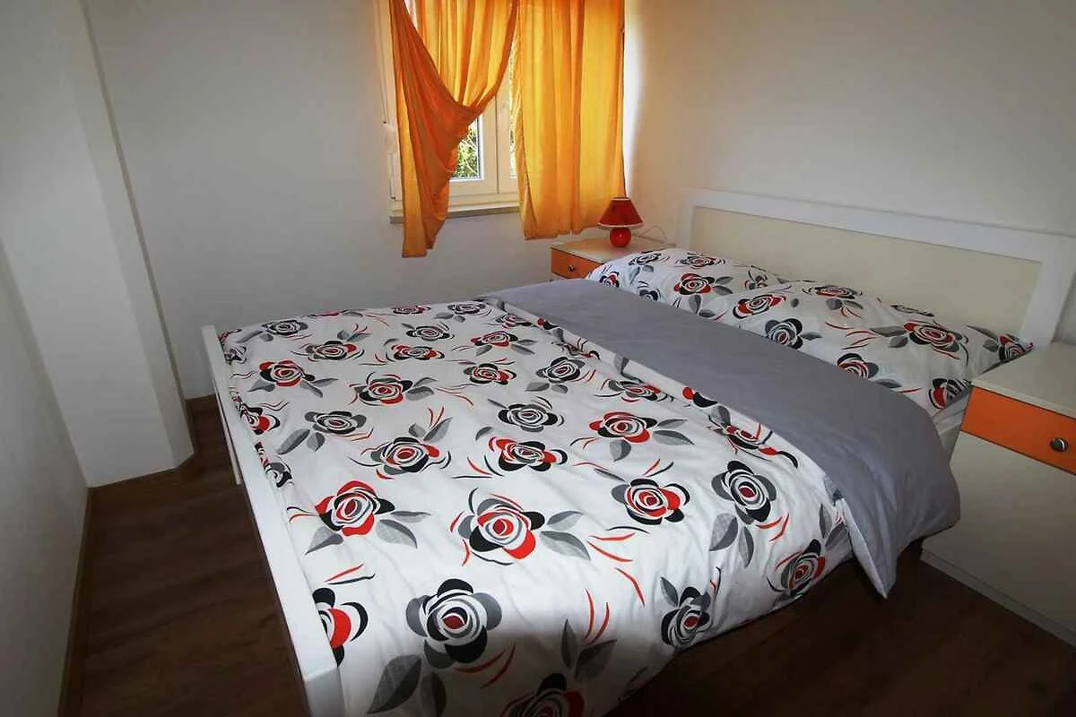 Malinska. Die Ferienwohnung befindet sich auf einem Gartengrundstück. Parkplatz auf dem Grundstück.