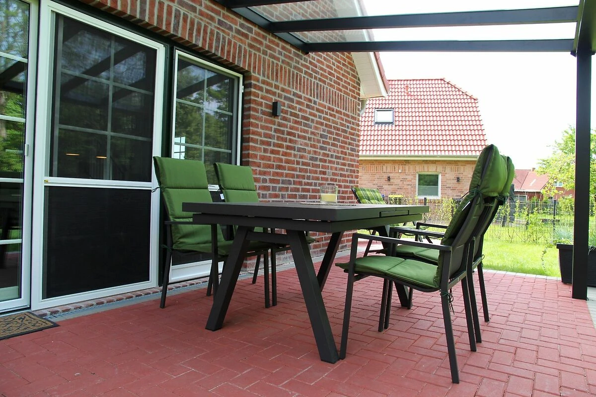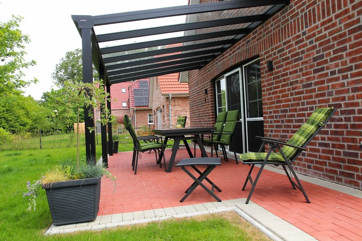 Die einmalige Lage des Hauses in perfekter Südwest-Ausrichtung sorgt dafür, dass Sie den Blick auf das idyllische Sieltief genießen können. Die zwei Terrassen (eine kleine in Süd- und eine große mit Überdachung in Westausrichtung), der schöne Steg und der eingezäunte Garten sind ein wahrer Traum für Natur- und Ruheliebhaber. Hier können Sie an warmen Tagen die Sonne genießen, grillen (ein Elektrogrill ist vorhanden) oder gemütlich in den Gartenmöbeln entspannen. Der Garten verfügt zudem über eine Liegewiese, die Platz zum Spielen für die Kinder bietet, während Sie die ruhige Umgebung genießen. Für die kleinen Gäste ist die Unterkunft besonders kinderfreundlich gestaltet, und auch Ihr Hund ist herzlich willkommen – so steht einem gemeinsamen Urlaub nichts im Wege!