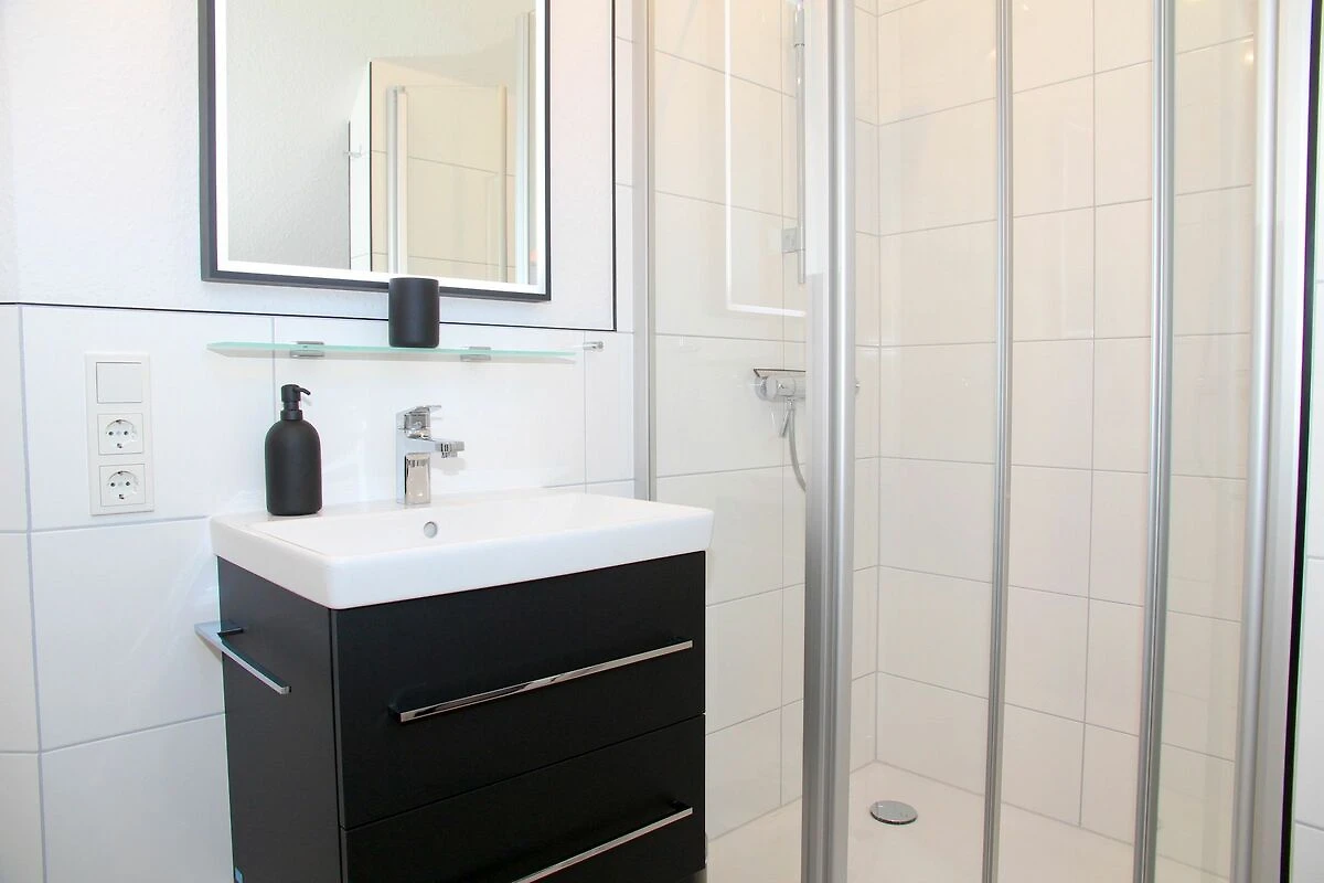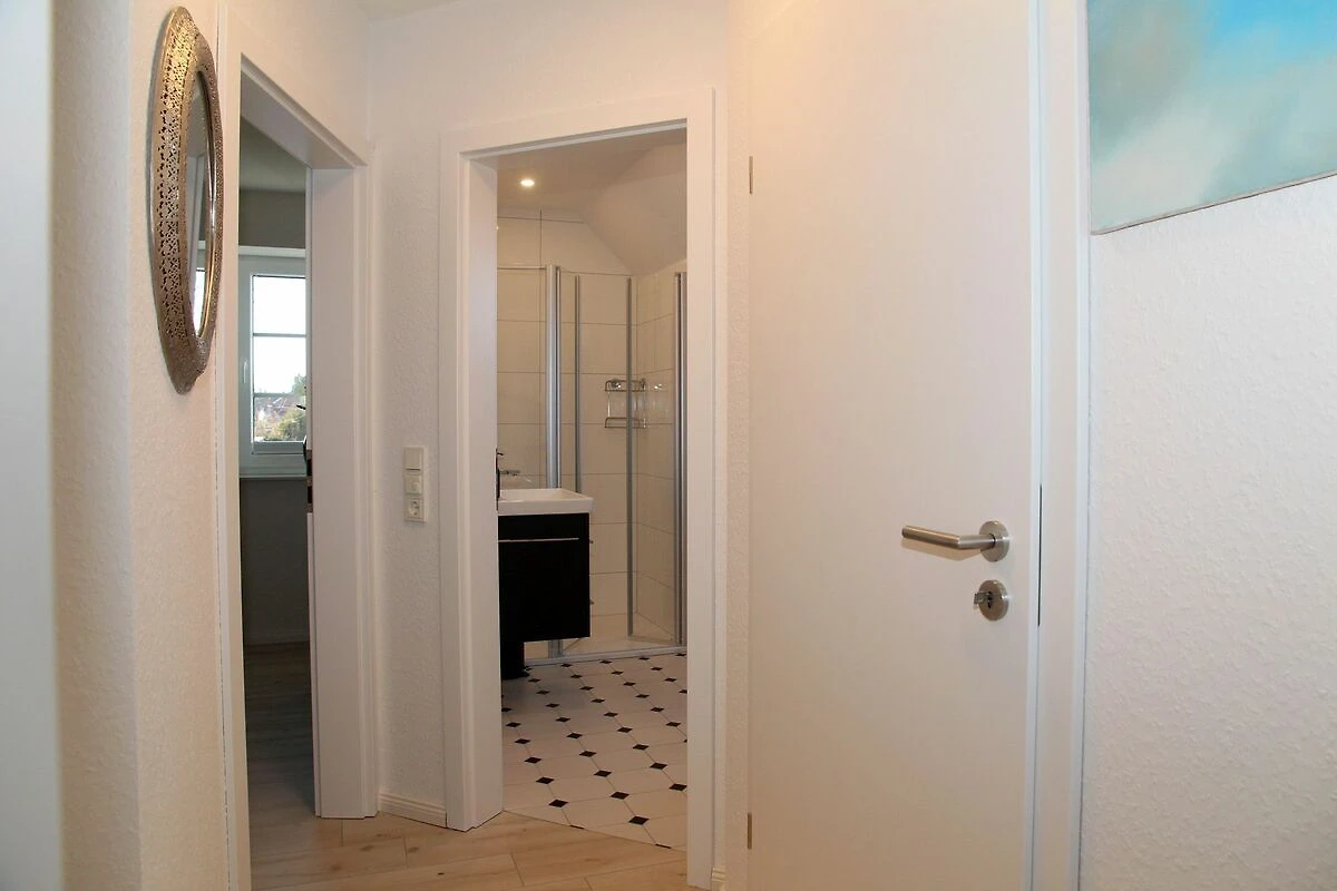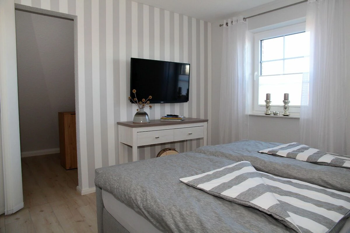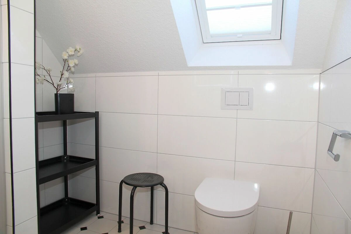 Das Haus bietet Ihnen insgesamt drei Schlafzimmer, die mit flauschigen Betten und viel Stauraum ausgestattet sind. Sie sind der perfekte Rückzugsort für eine erholsame Nachtruhe. Eines der Schlafzimmer befindet sich mit zwei einzelnen Boxspringbetten, Kleiderschrank und TV im Erdgeschoss, die beiden weiteren Schlafzimmer befinden sich mit jeweils einem Doppelboxspringbett (1x 1,80 m, 1x 1,60 m), Kleiderschrank (einmal sogar begehbar) und TV im Obergeschoss. Zudem stehen Ihnen zwei moderne Badezimmer zur Verfügung, die mit großen bodengleichen Duschen, Handtuchheizkörper, Föhn, WC und Waschbecken ausgestattet sind. Das große Badezimmer im Erdgeschoss bietet darüber hinaus noch die Sauna, eine Waschmaschine und einen Trockner.