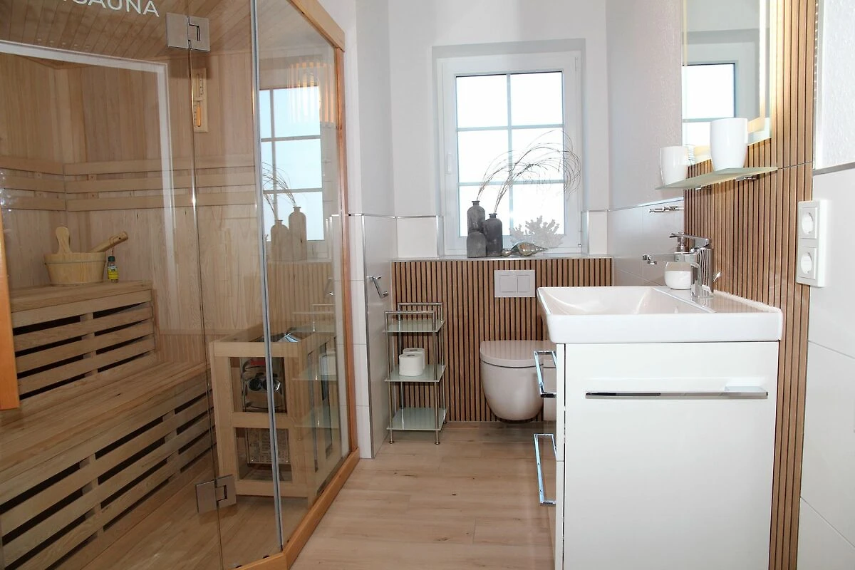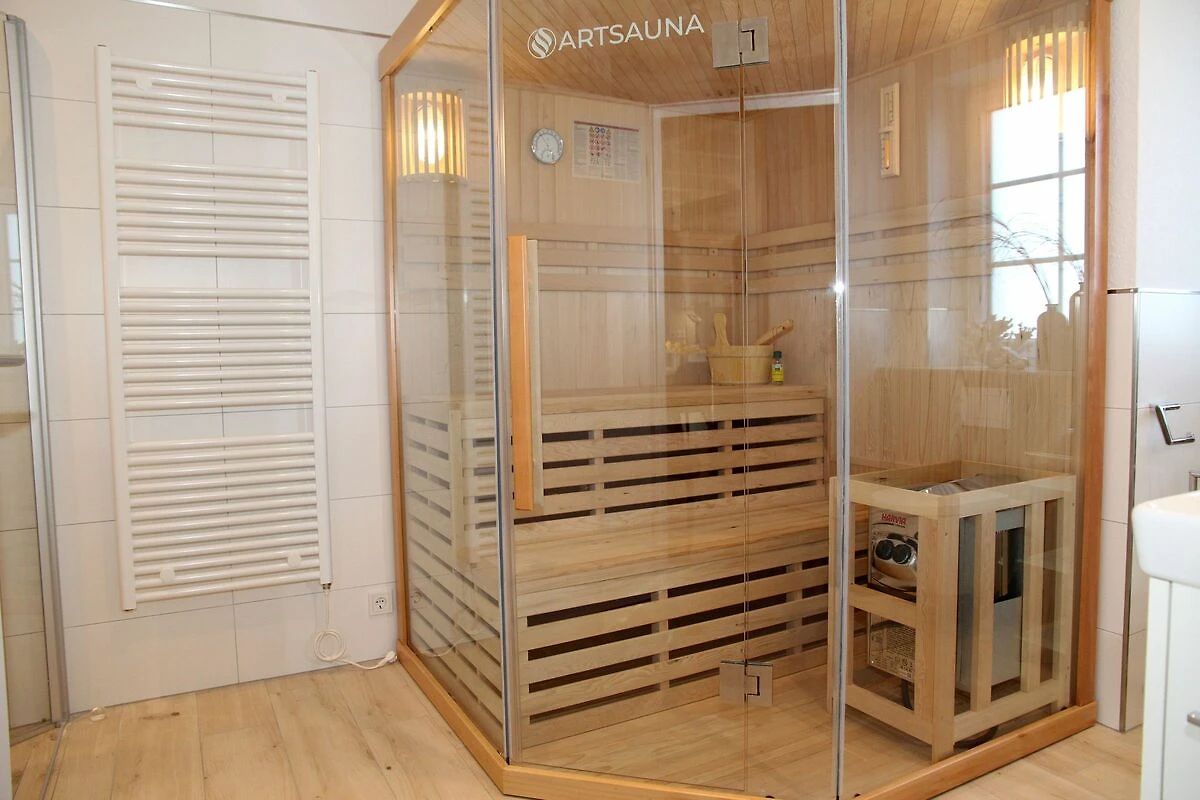Ein Highlight des Sielentium ist die zur alleinigen Nutzung zur Verfügung stehende Sauna – ideal, um nach einem aktiven Tag in der Umgebung zu entspannen.
