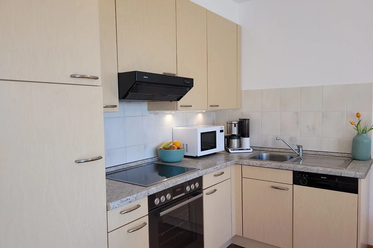 Alle Wohnungen verfügen über ein Bad mit Badewanne / Dusche, eine komplette Einbauküche mit Herd und Geschirrspüler.