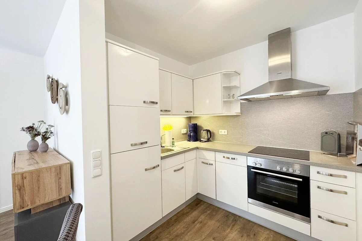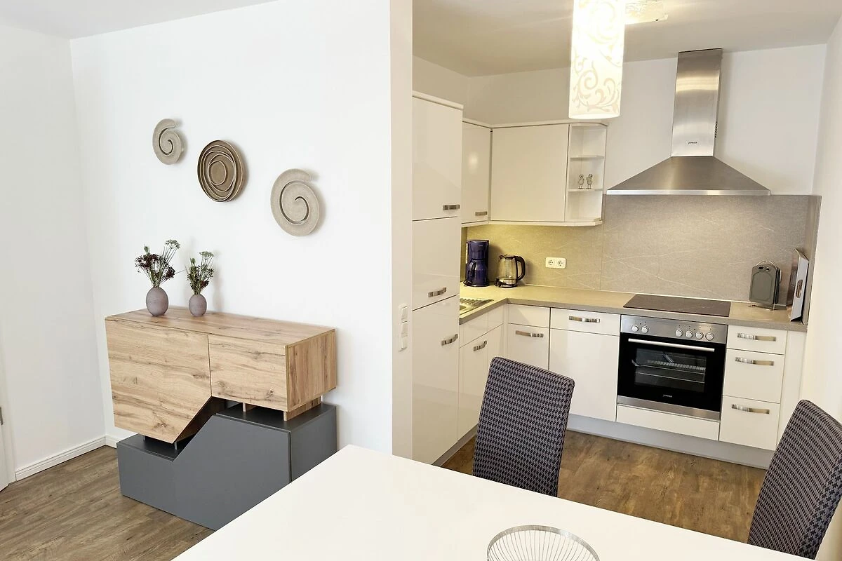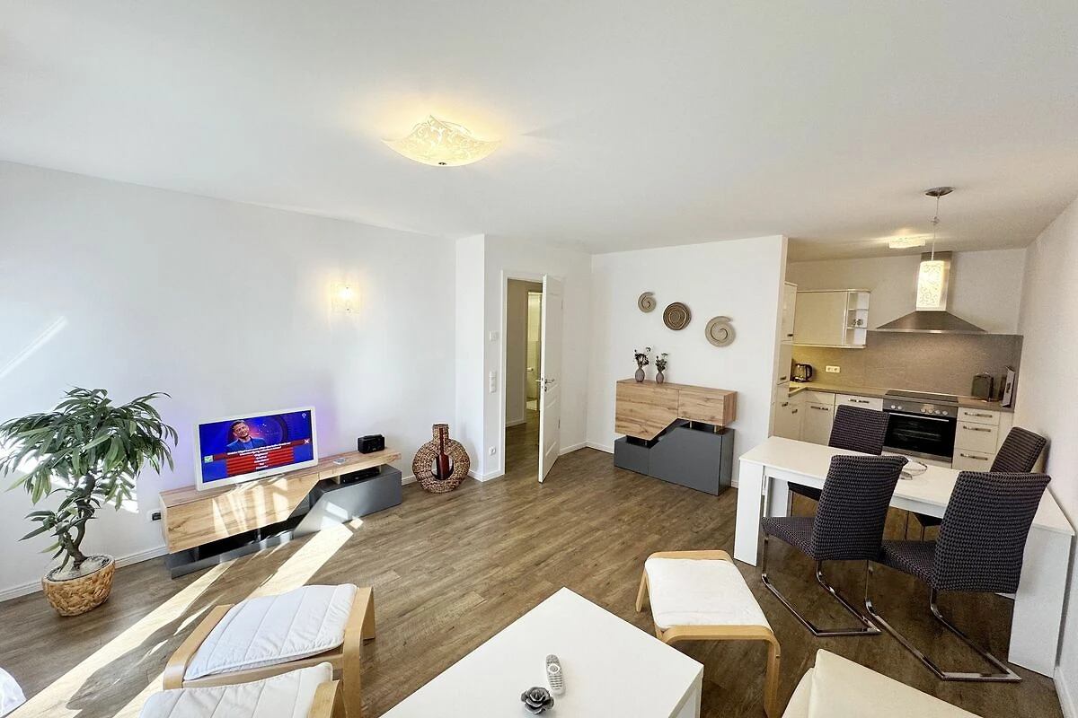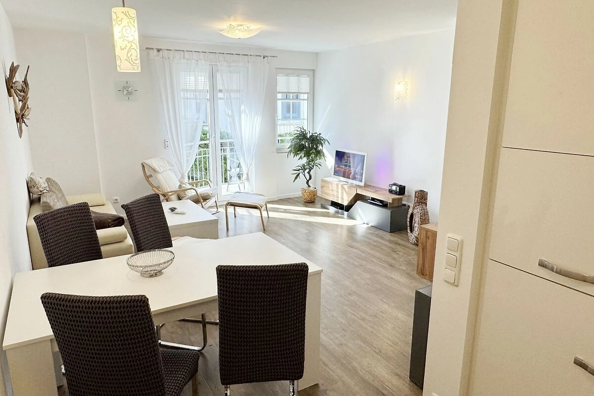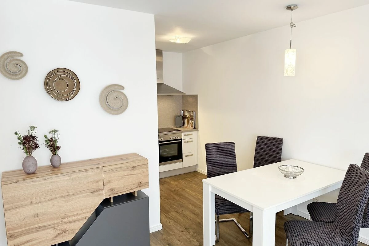 Unsere gemütliche FeWo 07 Aurora in der Villa Rosa liegt zentral inmitten der Selliner Wilhelmstrasse entfernt. Mit ihren ca. 54 m² ist unsere Nichtraucherwohnung ideal für 2 Erwachsene + 1 Kleinkind bis 3 Jahre im Kinderreisebett. Das gemütliche Wohnzimmer mit angrenzender Küchenzeile und Esstisch ist in dezenten Erdtönen gehalten. Hier befindet sich eine Couch, einen Couchtisch, einem Sideboard, ein DAB-Radio, einen WLAN-Zugang, eine Flachstrecke mit einem Smart-TV (65 Zoll), der nach einem ereignisreichen Tag zu entspannten Stunden vor dem Fernseher einlädt. Oder Sie verbringen den Abend in gemütlicher Atmosphäre mit einem Buch aus unserer reichhaltigen Bibliothek oder bei einem kurzweiligen Gesellschaftsspiel, von denen wir ebenfalls eine Auswahl für Sie vorhalten. Vom Wohnbereich oder vom Schlafzimmer gelangen Sie auf Ihren bestuhlten Südwest Balkon - hier können Sie den Tag gemütlich bei einer Flasche Wein ausklingen lassen und Pläne für Ihre nächsten Ausflüge in und um Sellin schmieden. Selbstverständlich müssen Sie auch bei uns nicht auf den gewohnten Komfort einer Küchenzeile verzichten: eine Mikrowelle, ein Geschirrspüler, ein Herd mit Cerankochfeld und ein Kühlschrank mit Gefrierfach stehen ebenso zur Verfügung wie ein Toaster, eine Kaffeemaschine und ein Wasserkocher. Sie verfügt über ein separates Schlafzimmer mit einem Doppelbett (2,00m x 2,00m), verstellbaren Lattenrosten, eine angrenzende Ankleide mit Safe und direktem Zugang zum innenliegenden Badezimmer. Bei der Badezimmerausstattung punktet unsere FeWo Aurora mit Funktionalität: die ebenerdige Dusche ist extra gross, der wandgrosse Spiegel ist umlaufend beleuchtet und der Waschtisch bietet ausreichend Ablagefläche, um Ihre Badutensilien jederzeit griffbereit zu haben. Für zusätzlichen Komfort sorgt der beheizbare Handtuchhalter sowie ein WC und ein Fön. Ihre Koffer können Sie bequem im Abstellraum unterbringen. Hier stehen Ihnen zusätzlich ein Bügeleisen, ein Bügelbrett, ein Staubsauger und ein Wäscheständer zur Verfügung. Haustiere sind nicht erlaubt. Die moderne Fussbodenheizung lässt sich bequem je Zimmer regulieren und sorgt dafür, dass Sie sich auch ausserhalb der Sommermonate bei uns wohlfühlen können. Dazu trägt auch unser hauseigener Wellnessbereich (Sauna kostenpflichtig) im Kellergeschoss + Dampfbad bei. Die Wertmarken können Sie auf Nachfrage während Ihres Urlaubes erwerben. Auch ein kleiner Garten hinter dem Haus lädt zum Verweilen ein. Der Parkplatz Nr. 07 (Einfahrtshöhe 2,00 m) befindet sich in der Tiefgarage (Doppelparker: bis 1,80m Höhe, 5,00m Länge sowie 2 t Gewicht) und ist für PKWs und Kombis (bis 1,80 m Höhe und 1,90 m Breite) geeignet. Von der Tiefgarage haben Sie einen direkten Zugang zu unserem abschliessbaren Fahrradkeller, in dem Sie gerne Ihre mitgebrachten oder geliehenen Fahrräder unterstellen können. Die Erstausstattung eines Wäschepaketes (komplette Bettwäsche, 1 Duschhandtuch, 2 kleine Handtücher) können Sie bis 14 Tage vor Anreise gegen einen Aufpreis dazu buchen oder durch eigenes Ergänzen. Ab 2 gebuchten Paketen erhalten Sie einmalig 1 Geschirrhandtuch und 1 Duschvorleger hinzu.