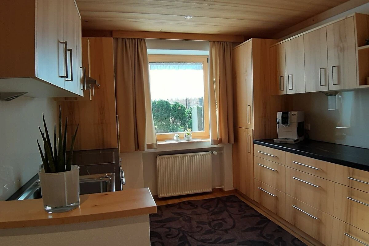 Wir führen Sie durch den geräumigen Eingangsbereich in die komplett eingerichtete Küche.