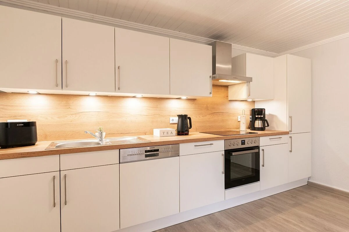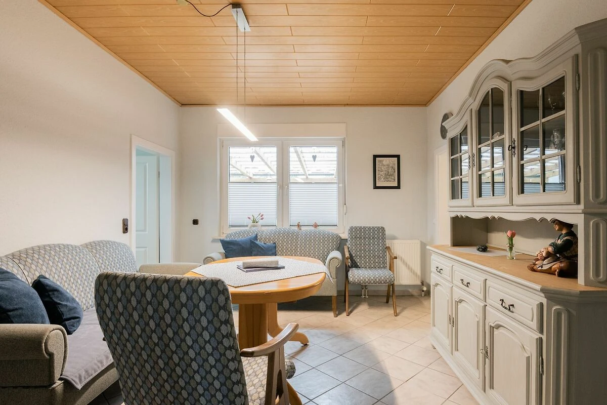 Ihre Unterkunft beinhaltet zwei Schlafzimmer (1 x Doppelbett 180x200cm und drei seniorengerechte Einzelbetten 100x200cm), eine voll ausgestattete Küche incl. E-Herd, Spülmaschine, Kühlschrank, Kaffeemaschine etc. Das gemütliche Wohnzimmer lädt mit einem Ostfriesensofa am Kamin zu einer leckeren Tasse Ostfriesentee ein. Im geräumigen Badezimmer stehen Ihnen eine ebenerdige Dusche, ein Waschtisch und ein WC zur Verfügung. Weiter gibt es ein separates Gäste WC. Eine Waschmaschine kann bei Bedarf gegen einen kleinen Aufpreis genutzt werden.