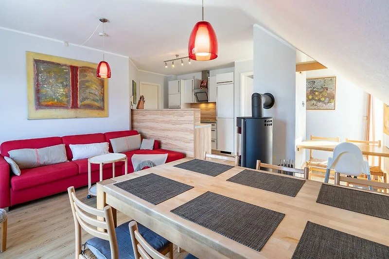 • Wohnzimmer mit Essplatz und offener Küche