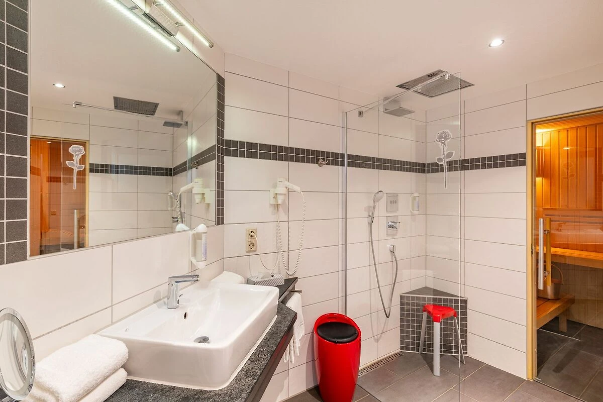 Sechs skandinavische Ferienhäuser beherbergen moderne und komfortable Ferienwohnungen, die teilweise mit eigener Sauna, Whirlpool oder wanne sowie Kamin ausgestattet sind. Zu jeder Wohnung gehört ein kostenfreier Parkplatz.