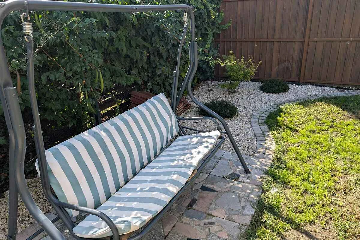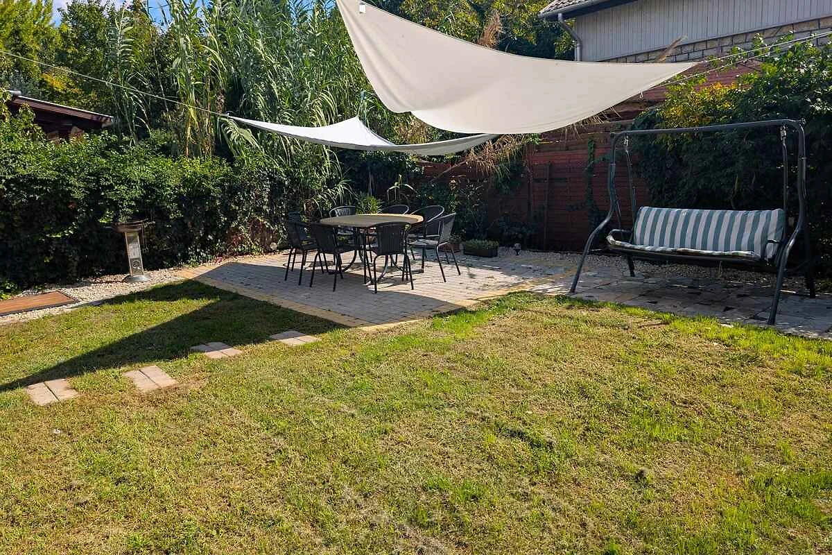 Zamárdi. Das Ferienhaus befindet sich auf einem 200 qm grossen, geschlossenen Gartengrundstück mit Wiese und Sträuchern, von einem Zaun begrenzt. Der Vermieter wohnt nicht im Haus oder auf dem Grundstück. Die Zufahrt erfolgt über eine Nebenstrasse (asphaltiert). Parkplatz (für 3 Pkws) auf dem Grundstück.
