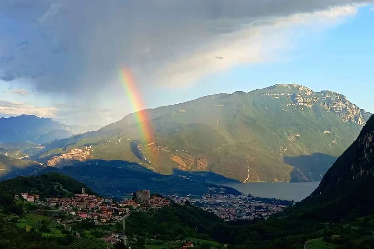 Ville del Monte, 600 mNN. Die Ferienwohnung befindet sich in einer Ferienanlage, auf einem 3200 qm grossen, geschlossenen Waldgrundstück mit Wiese und Bäumen, von einem Zaun und einer Hecke begrenzt. Nicht weit vom Tennosee entfernt, in der Nähe der Berge mit Panoramablick auf den Gardasee. Die Zufahrt erfolgt direkt von der Hauptstrasse (asphaltiert). Parkplatz in Carport und auf einem Parkplatz im Ort (Entfernung 5 m).