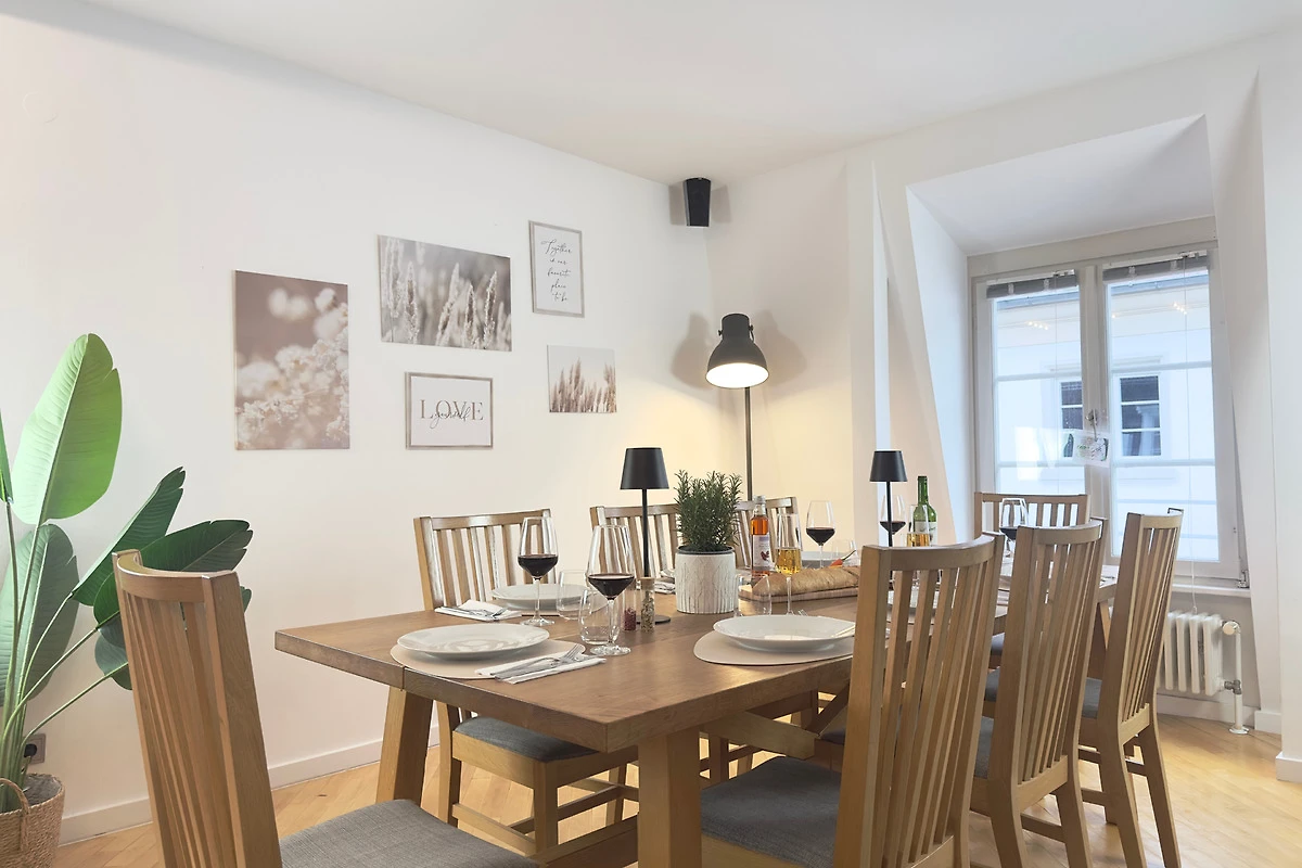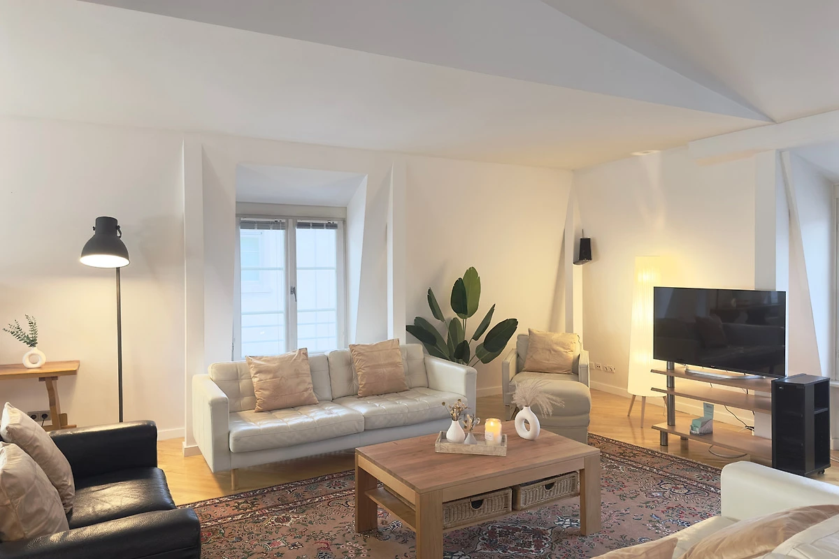 Mit einer offenen Bulthaup-Küche, grosszügigem Wohnbereich, vier Schlafzimmern und einer einzigartigen Dachterrasse bietet sie den perfekten Ort für Gruppen bis zu 10 Personen, nur wenige Schritte von Heidelbergs Highlights entfernt!