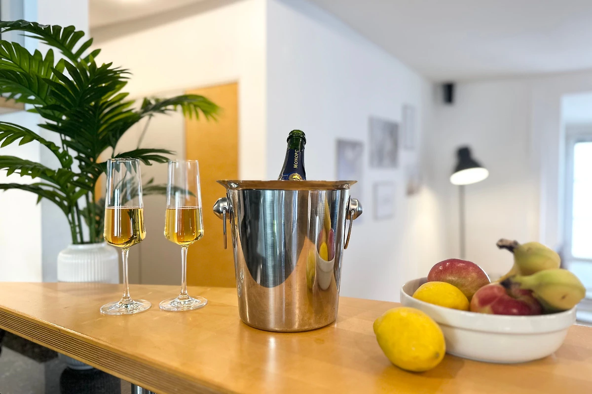 Der grosse Wohn- & Essbereich mit offener Bulthaup-Küche und XXL-Esstisch bietet viel Platz für gesellige Abende. Mit 4 Schlafzimmern & Platz für bis zu 10 Gäste ist die Wohnung ideal für Gruppen.