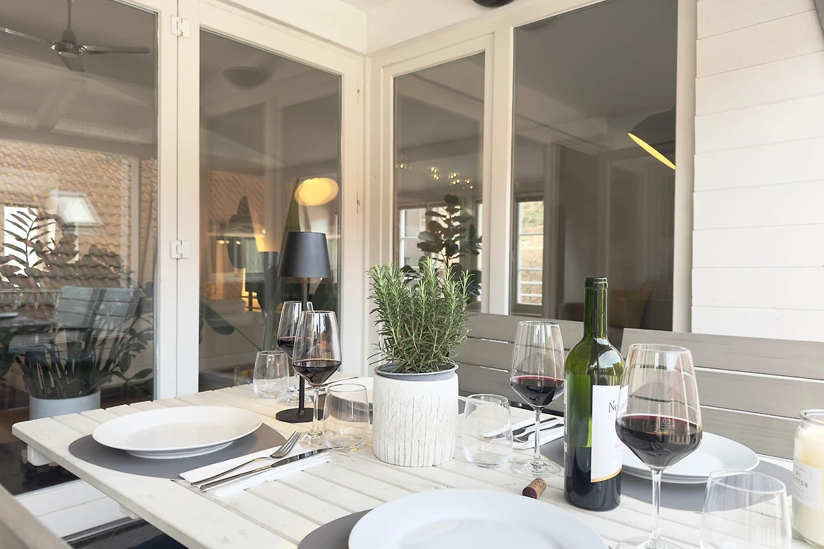 Das Highlight? Eine riesiger Wohn- und Essbereich mit offener Küche und Dachterrasse, die sich komplett nach innen öffnen läss; perfekt zum Entspannen mit Freunden & Familie.