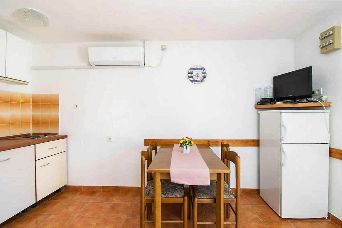 Esszimmer mit TV, Klimaanlage und Essecke (4 Plätze). 2 Schlafzimmer jeweils (9 qm) mit 1 Doppelbett. Kochecke mit Klimaanlage, Elektroherd (2 Platten) und Kühlschrank (Eisfach). Bad mit Dusche, WC und Fenster.