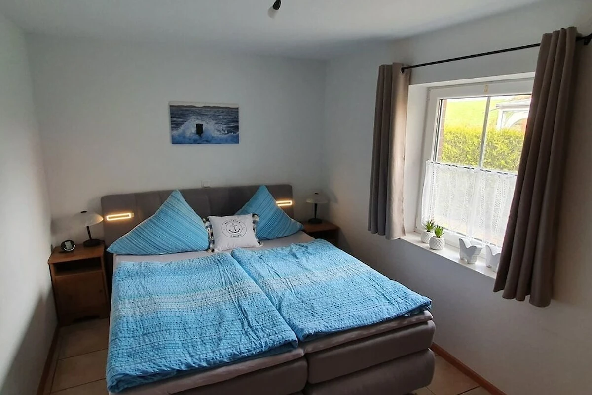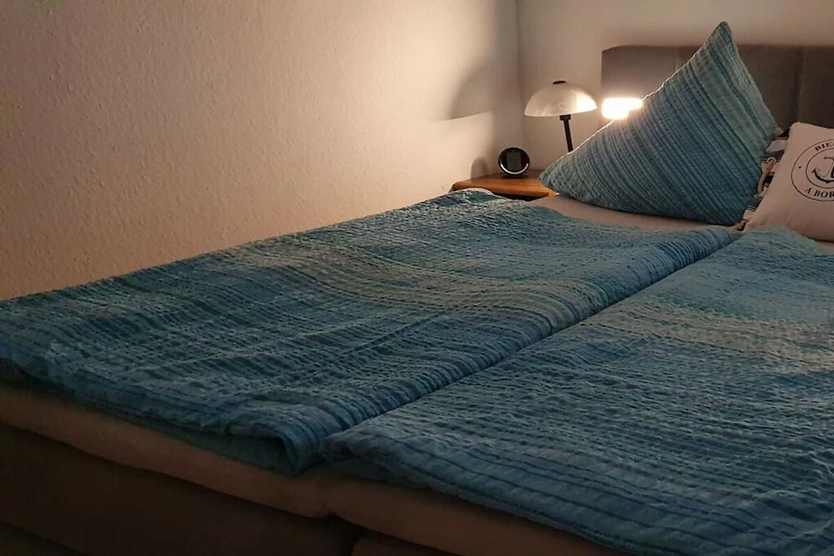 Die Ferienwohnung verfügt über 1 Schlafzimmer mit einem Boxspringbett der Hotelklasse und 1 Schlafzimmer mit 2 Einzelbetten, Bad und Gäste-WC.