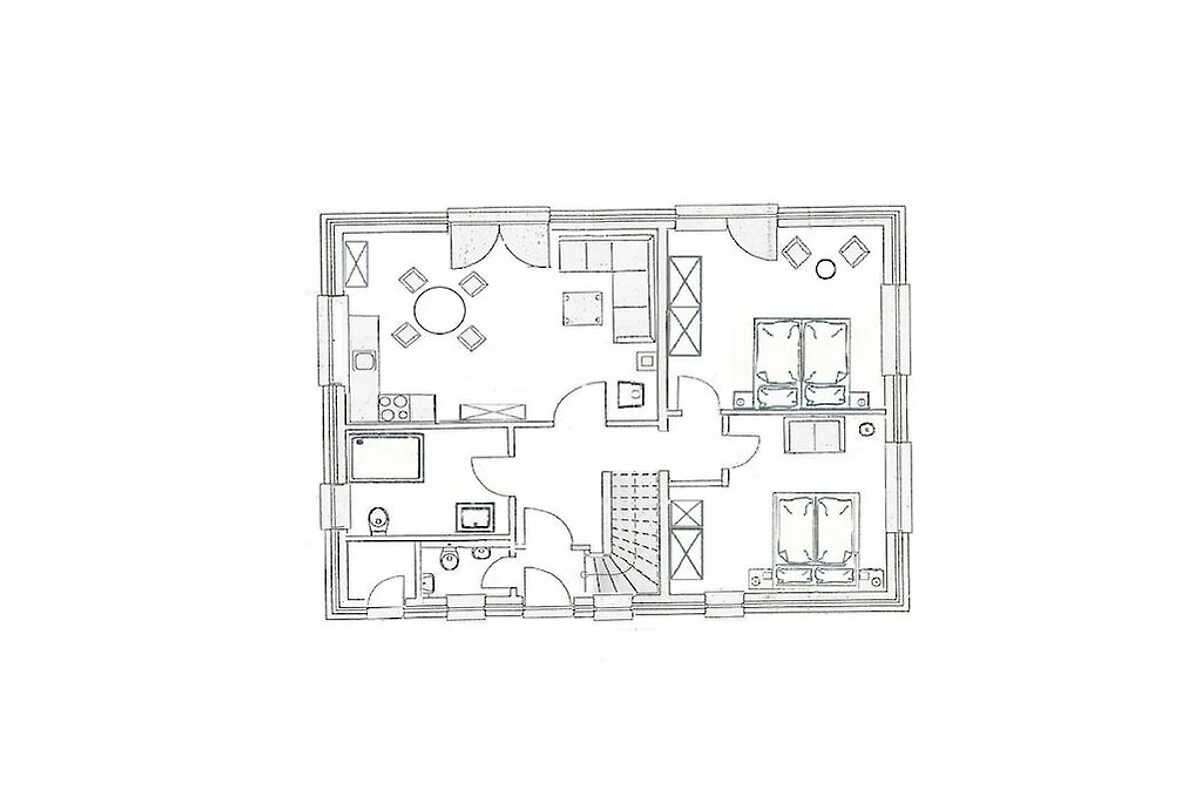 Parterre: (Eingangshalle(, , Heizung), offene Küche(, , TV, Esstisch, Herd, Kochplatte, Wasserkocher, Toaster, Kochherd, Kaffeemaschine, Backofen, Spülmaschine, Kühlschrank, Heizung), Schlafzimmer(Doppelbett, TV, ), Schlafzimmer(Doppelbett, Heizung), Badezimmer(, Toilette, Dusche, Waschbecken, Heizung), Abstellraum(, Trockenschrank))