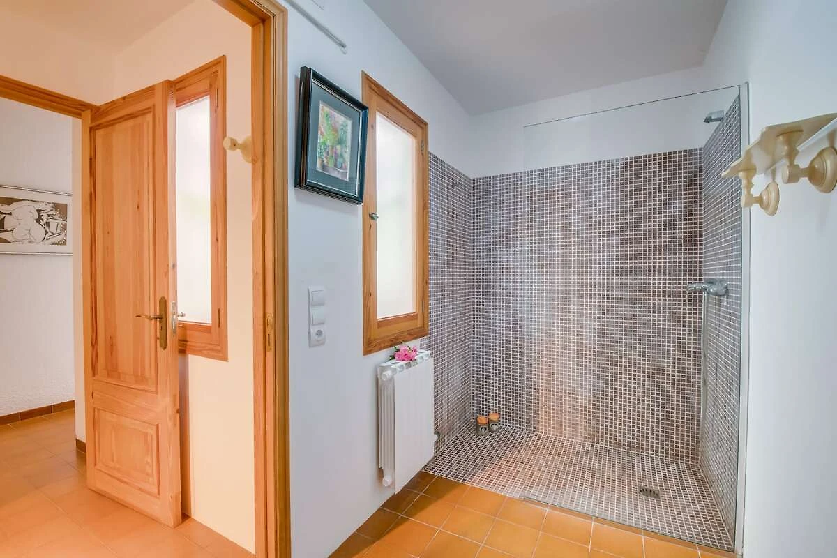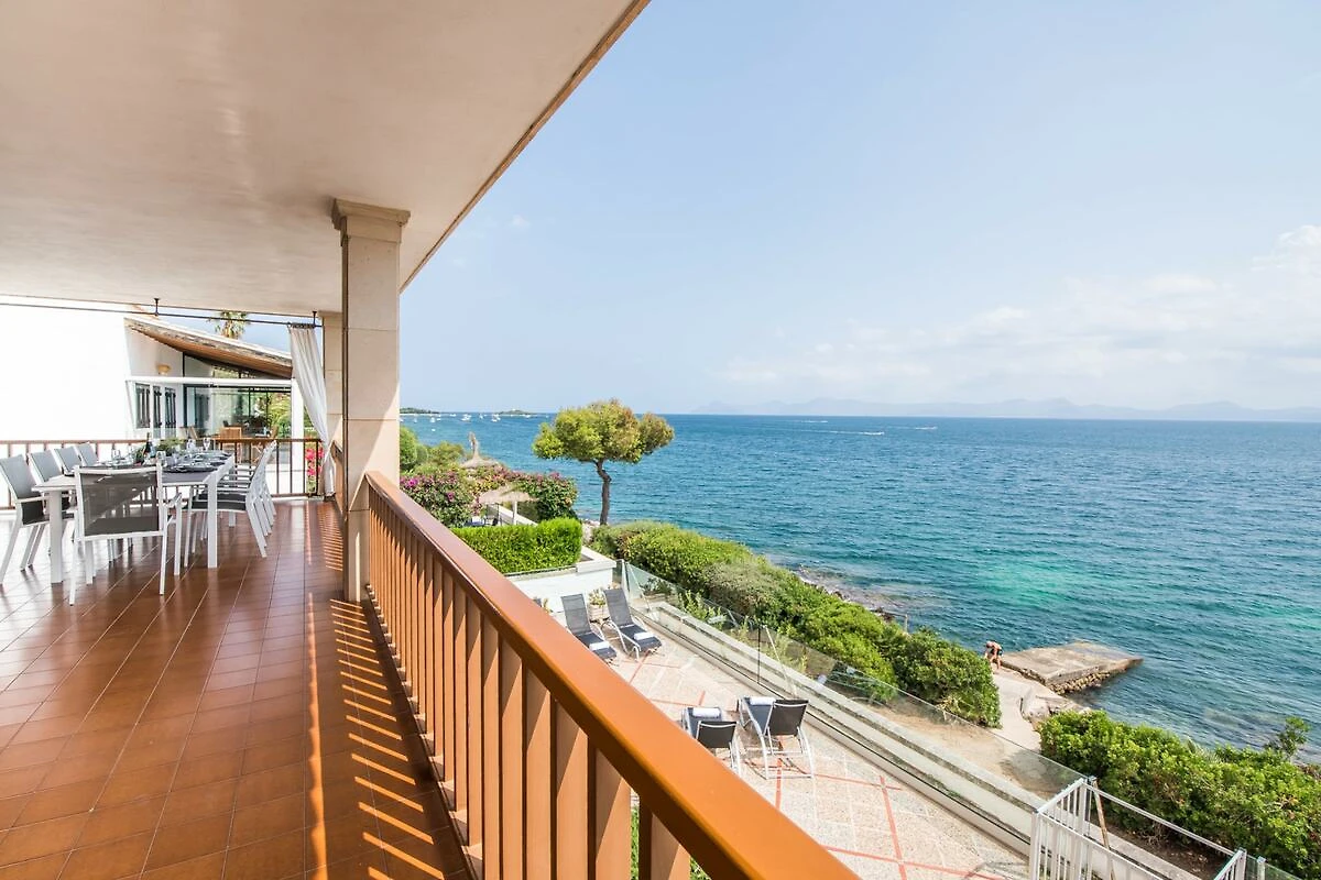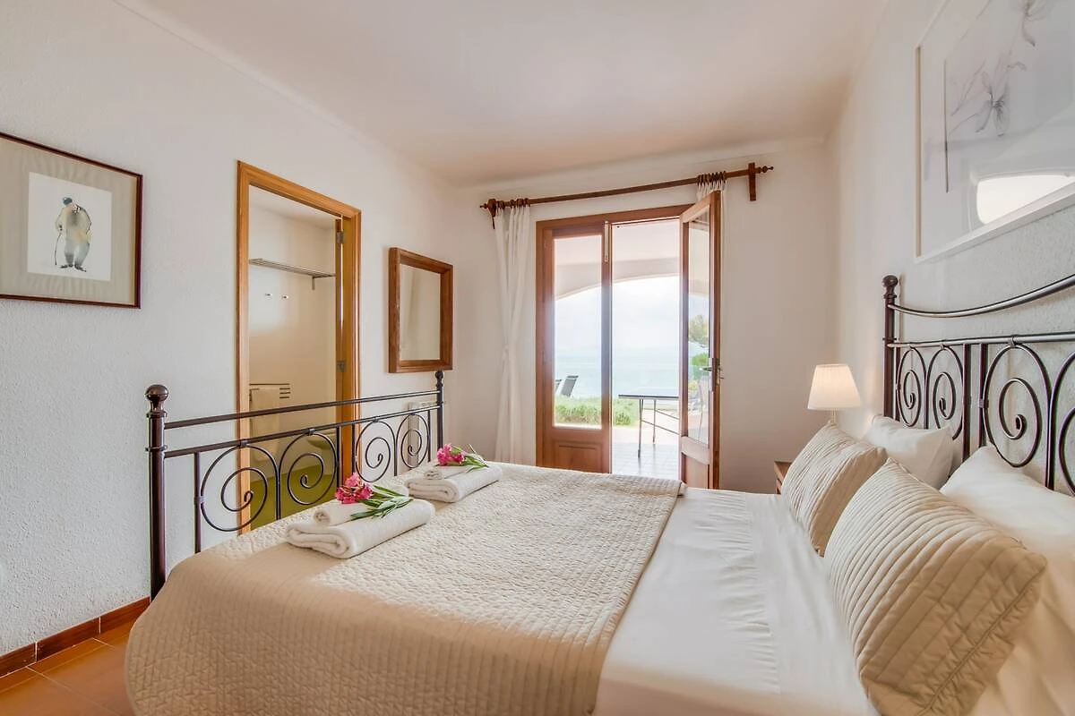 Im Erdgeschoss befinden sich vier weitere Schlafzimmer, eines davon mit eigenem Bad, und ein drittes Badezimmer für zusätzlichen Komfort. Drei dieser Schlafzimmer öffnen sich zu einer großzügigen, 120 m² großen, halb überdachten Terrasse mit Essbereich, Lounge mit Sonnenliegen und Tischtennisplatte für unterhaltsame Unterhaltung. Ein privater Steg führt direkt zum Meer und bietet bequemen Zugang zu Mallorcas kristallklarem Wasser.