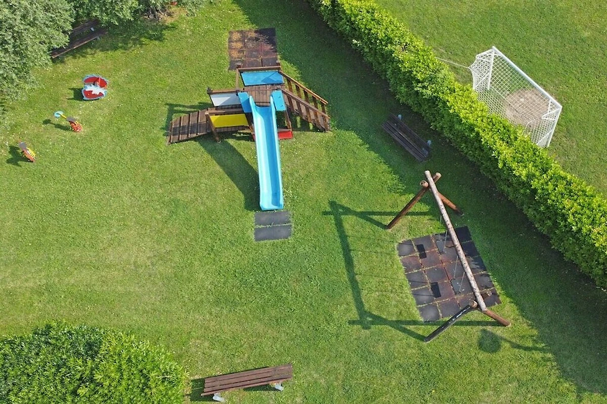 Der Poolbereich ist in 3 Bereiche unterteilt: Erwachsenenbereich (25x18m), Kinderbereich und Whirlpoolbereich; zur Vervollständigung der Unterkunft gibt es einen großen Park von 40.000 Metern, Kinderspielplatz, Fußballplatz, Strandtennis, Bar, Spielraum und Besprechungsraum.