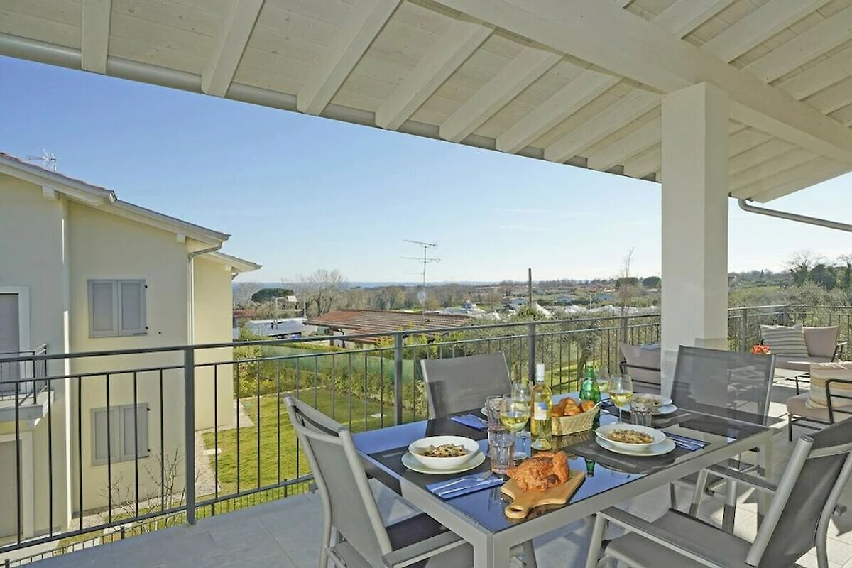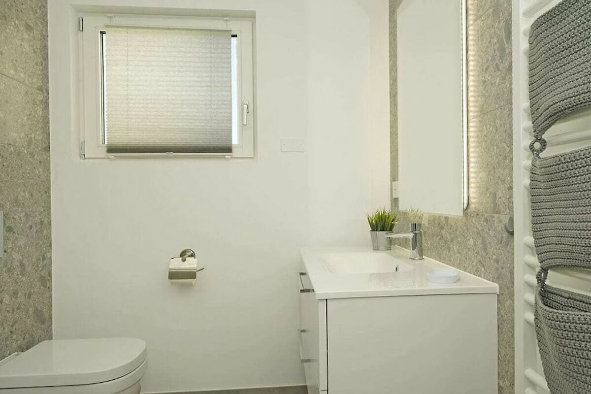 Die Wohnung, die sich im zweiten Stock befindet und zu Fuß erreichbar ist, öffnet sich zum geräumigen Wohnzimmer, das mit einem bequemen Doppelschlafsofa, einem Fernseher, einem Esstisch und einer gut ausgestatteten offenen Küche mit Backofen, Geschirrspüler, Mikrowelle, Toaster und amerikanischer Küche ausgestattet ist Kaffeemaschine. Von hier aus haben die Gäste Zugang zu der herrlichen Terrasse, die mit einer Reihe von Außensofas und einem Esstisch ausgestattet ist, perfekt, um köstliche Mahlzeiten im Freien zu genießen. Der Schlafbereich besteht aus zwei Schlafzimmern, die beide mit je einem Queensize-Bett ausgestattet sind, von denen eines über ein eigenes Badezimmer mit Dusche verfügt. Ein zweites Badezimmer mit Dusche rundet das Layout ab.