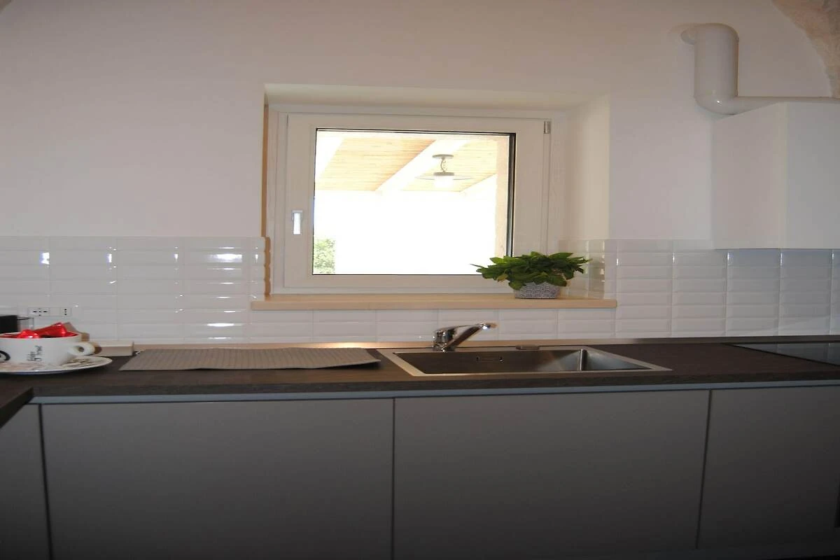 Das Trullo Rosa ist der perfekte Ort für einen Traumurlaub in Apulien und bietet drei stilvolle Doppelzimmer, jedes mit eigenem modernen Bad - ideal für entspannte Nächte und Privatsphäre. Die gut ausgestattete Küche lädt dazu ein, kulinarische Köstlichkeiten zu zaubern oder ein traditionelles italienisches Gericht zu genießen. Der einladende Eingangsbereich im Wohnzimmer schafft eine warme Atmosphäre und lädt zum gemütlichen Beisammensein ein. Ein wunderschöner Swimmingpool zur alleinigen Nutzung bietet absolute Ruhe und Entspannung - der perfekte Rückzugsort an heißen Sommertagen. Verschiedene Außenbereiche ermöglichen es Ihnen, die herrliche Landschaft zu genießen und unvergessliche Sonnenuntergänge zu erleben. Der Grillplatz ist ideal für gemütliche Grillabende und Mahlzeiten im Freien.