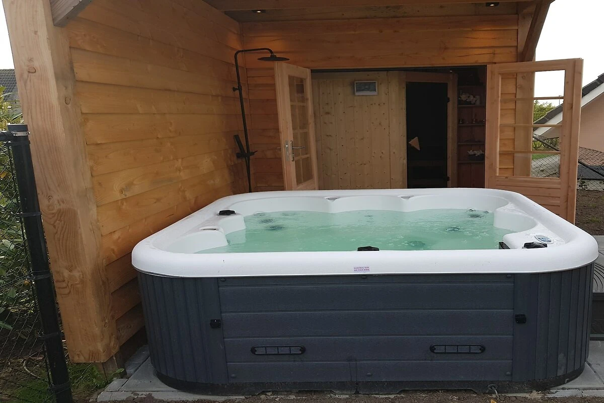 Im Garten befindet sich ein Schuppen mit Whirlpool und Außendusche (warm und kalt). In der Scheune finden Sie eine Sauna mit Umkleideraum. Sowohl die Sauna als auch der Wellnessbereich sind für 5 Personen geeignet. Der Außenbereich ist komplett eingezäunt.