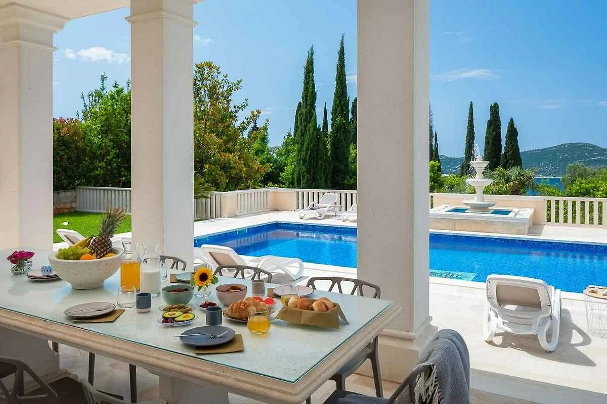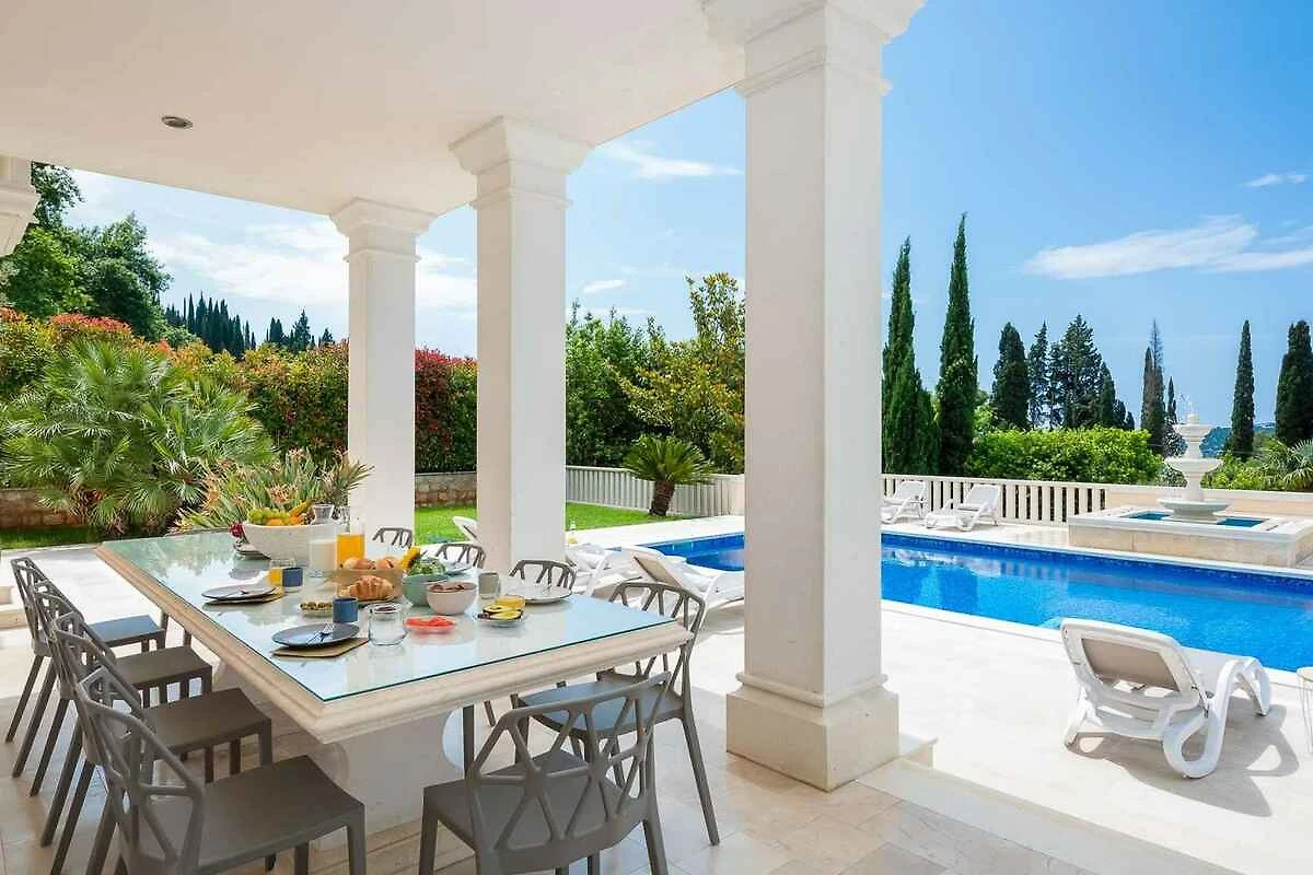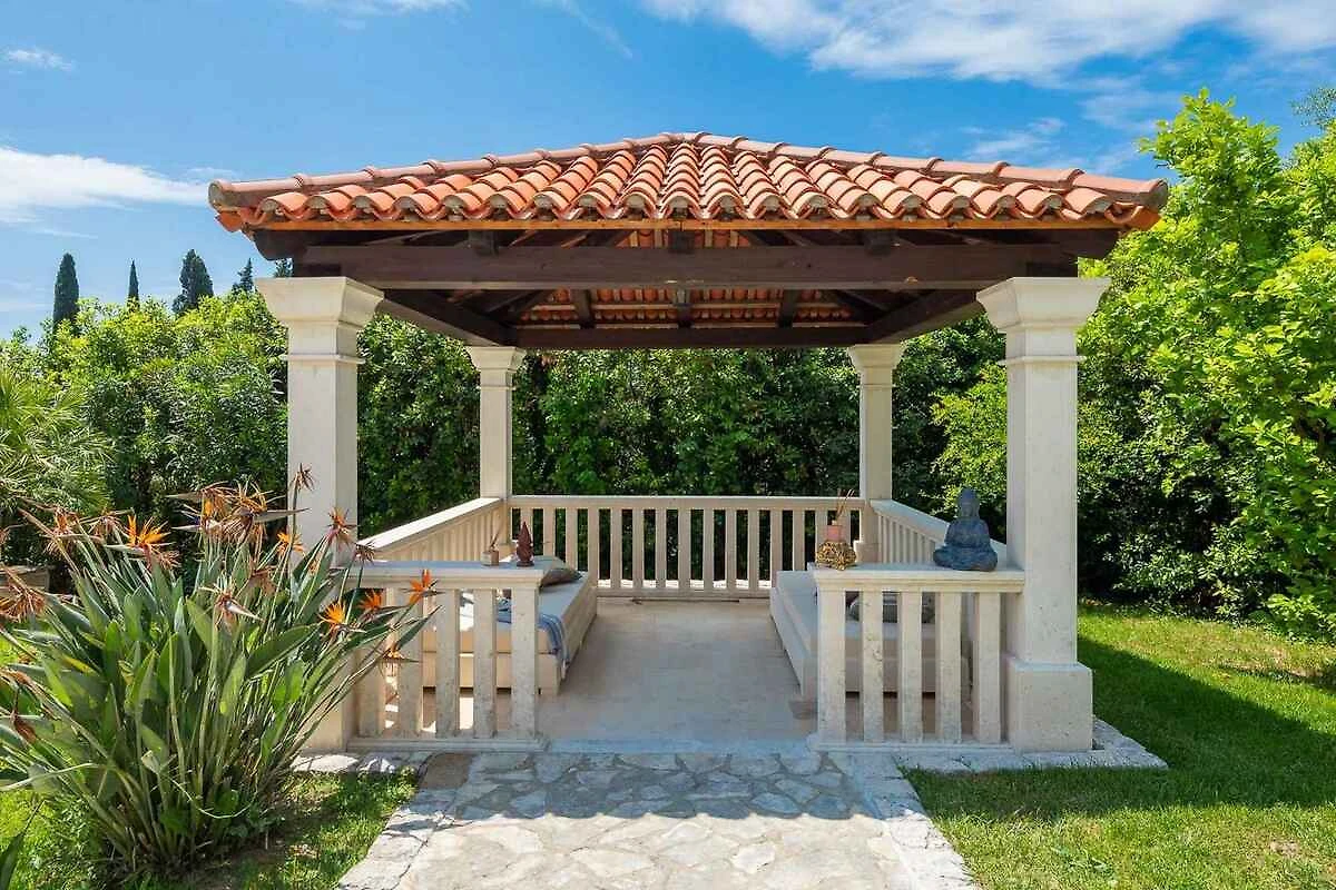 Trsteno. Die Villa befindet sich auf einem geschlossenen Gartengrundstück, von einem Zaun begrenzt. Parkplatz (für 4 Pkws) auf dem Grundstück.