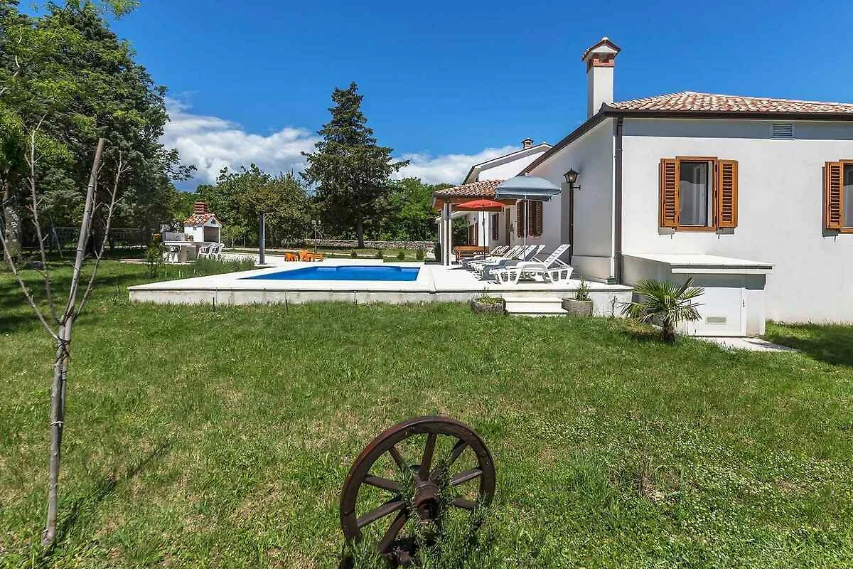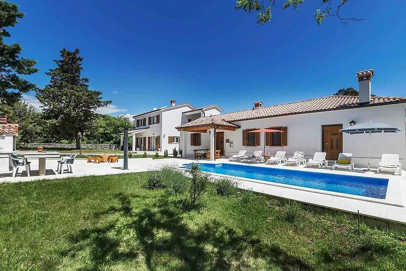 Labin. Die Villa befindet sich auf einem geschlossenen Gartengrundstück, von einem Zaun begrenzt. Parkplatz (für 3 Pkws) auf dem Grundstück.