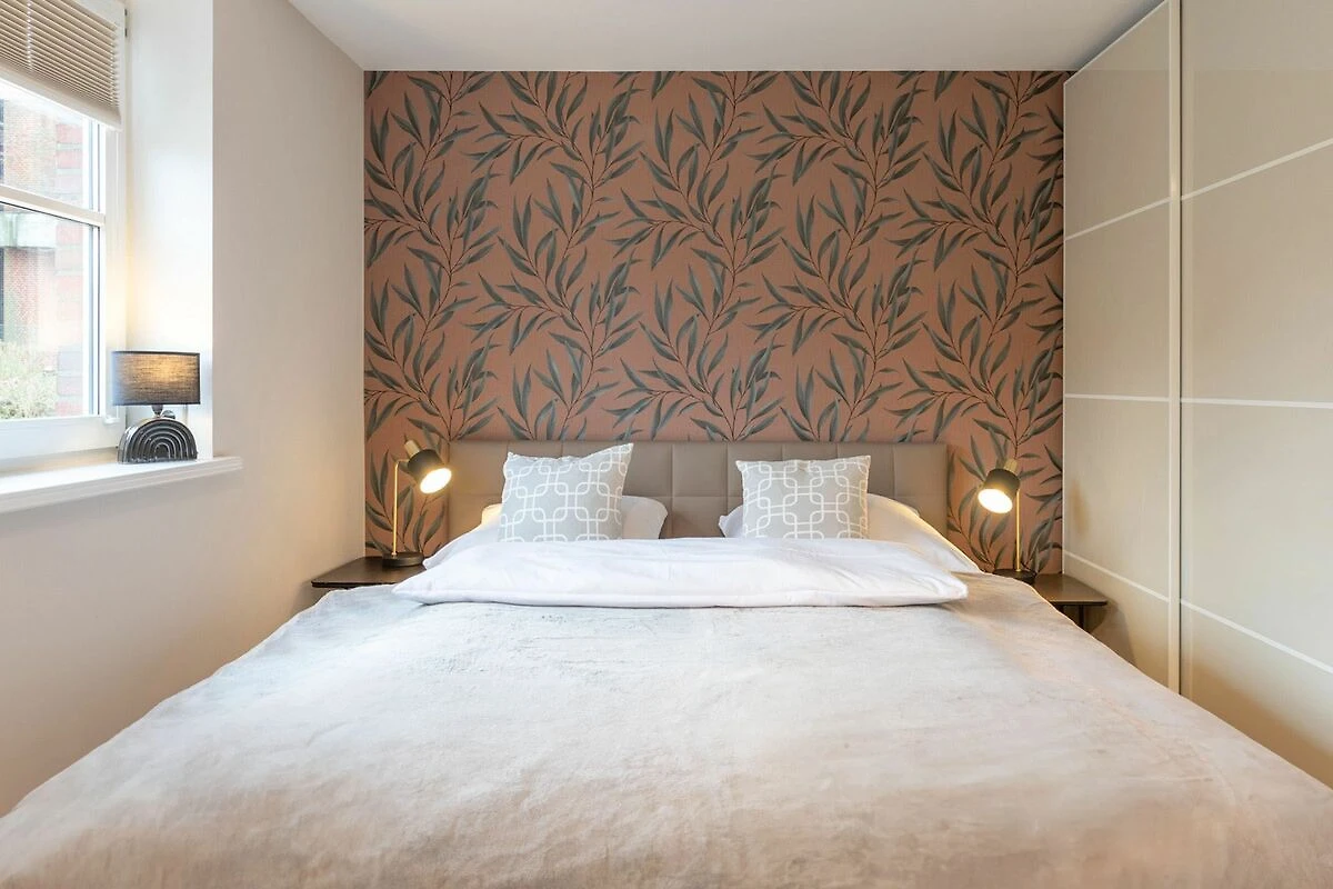 Die Ferienwohnung bietet Ihnen zwei Schlafzimmer, die mit je einem bequemen Boxspringbett (180 × 200) und Kleiderschrank ausgestattet sind.