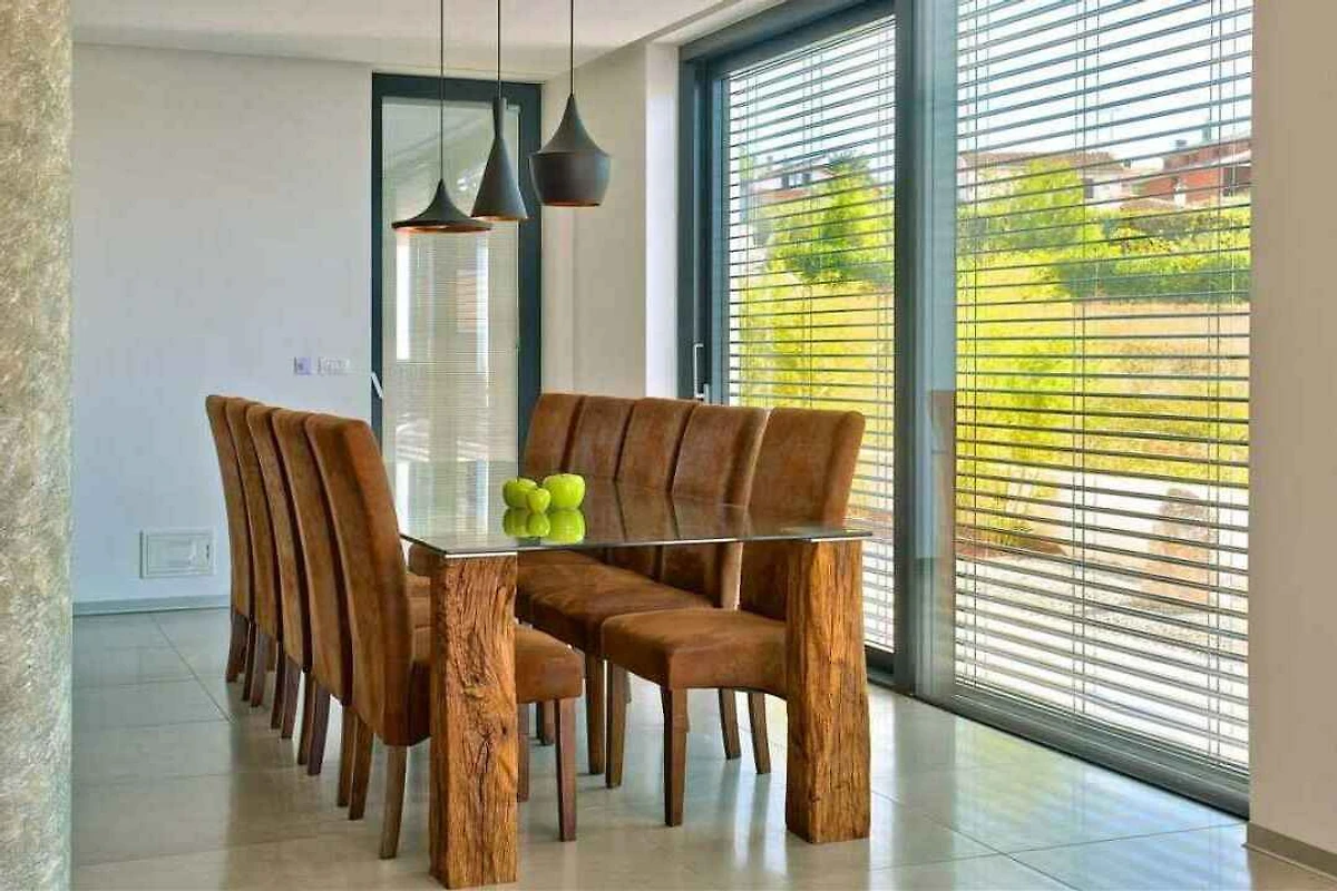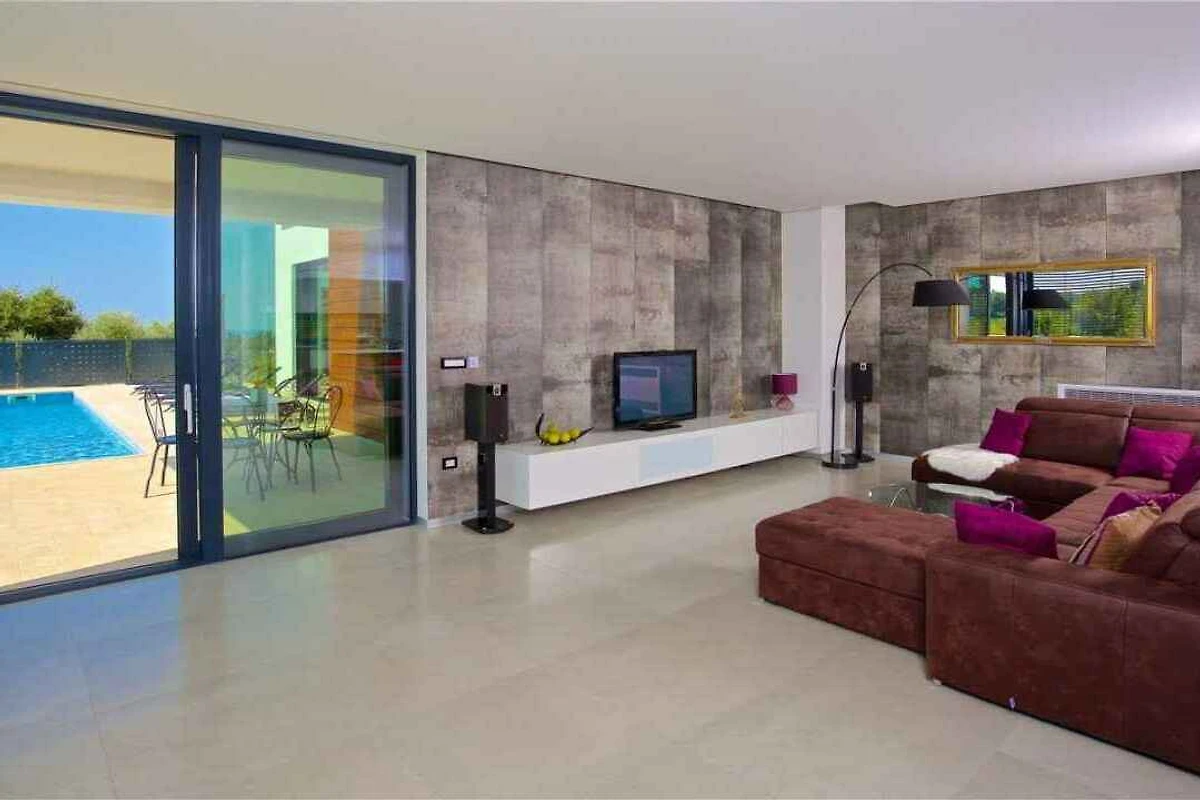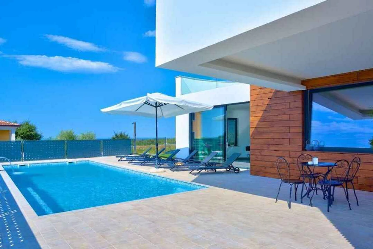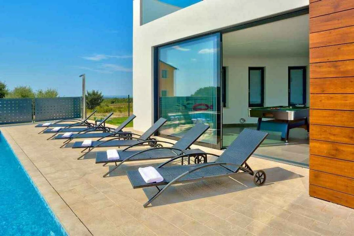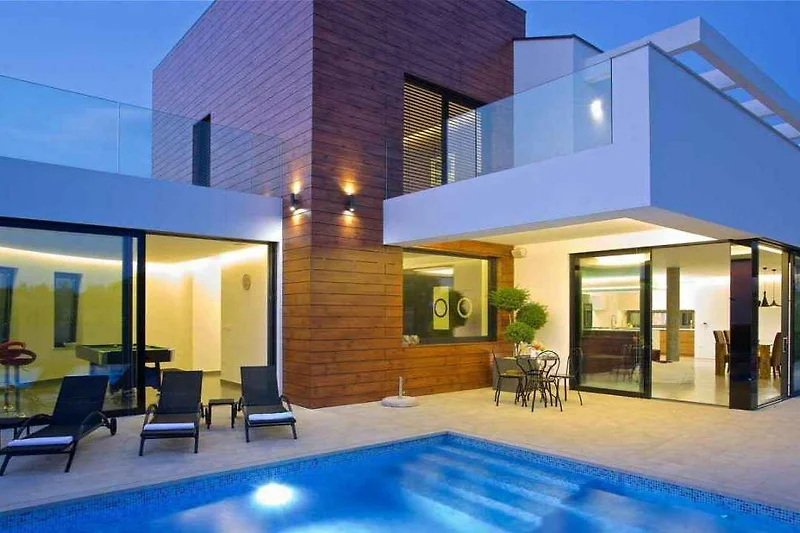 Die einzeln stehende Villa ist modern und luxuriös eingerichtet. Zur Nutzung stehen zur Verfügung: Sonnenschirm, Sonnenliege, Gartendusche, Grillmöglichkeit und Gartenmöbel.