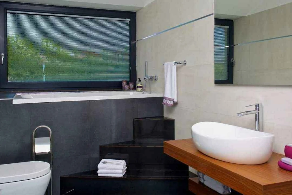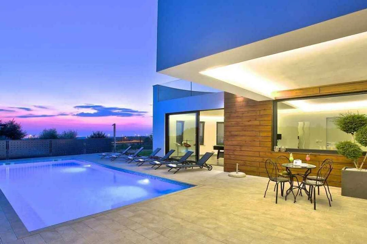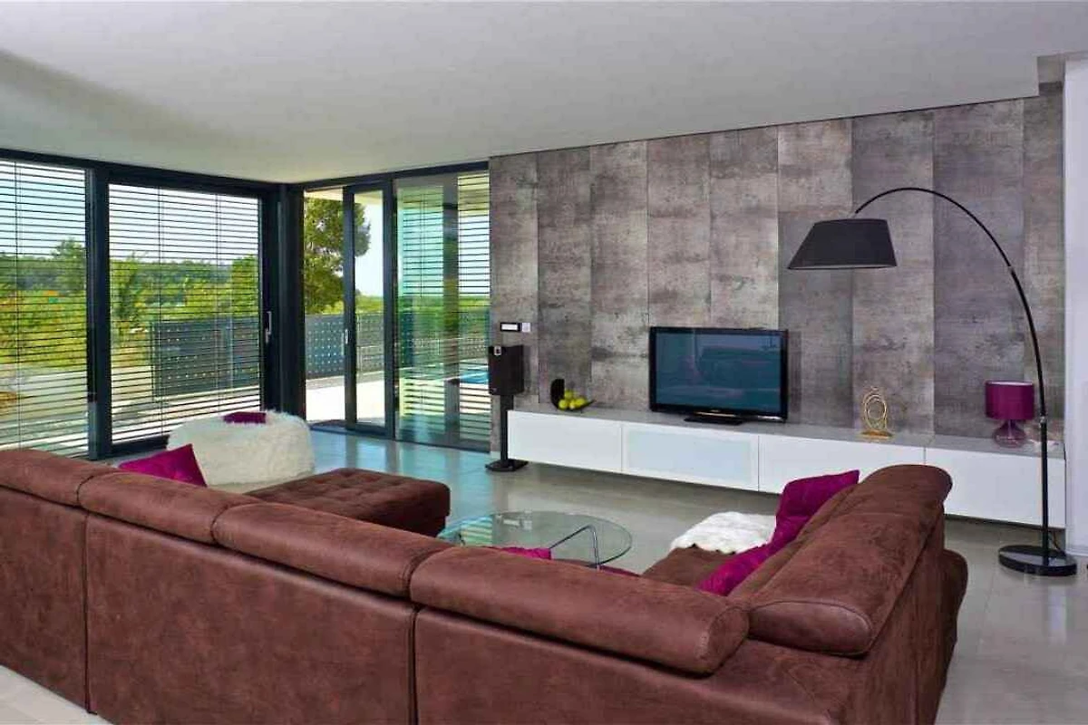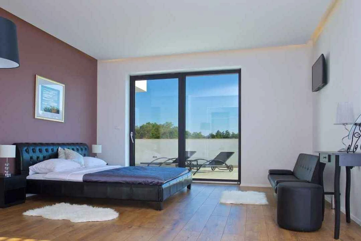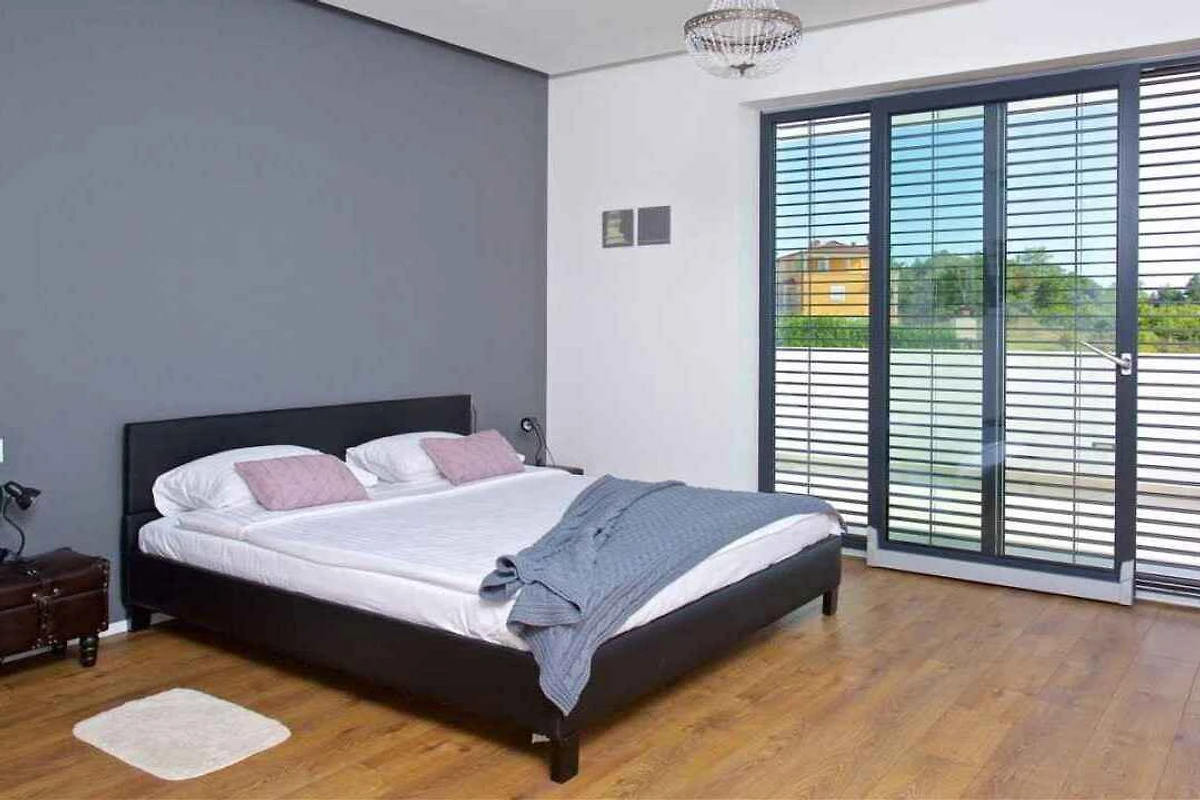 Die einzeln stehende Villa ist modern und luxuriös eingerichtet. Zur Nutzung stehen zur Verfügung: Sonnenschirm, Sonnenliege, Gartendusche, Grillmöglichkeit und Gartenmöbel.