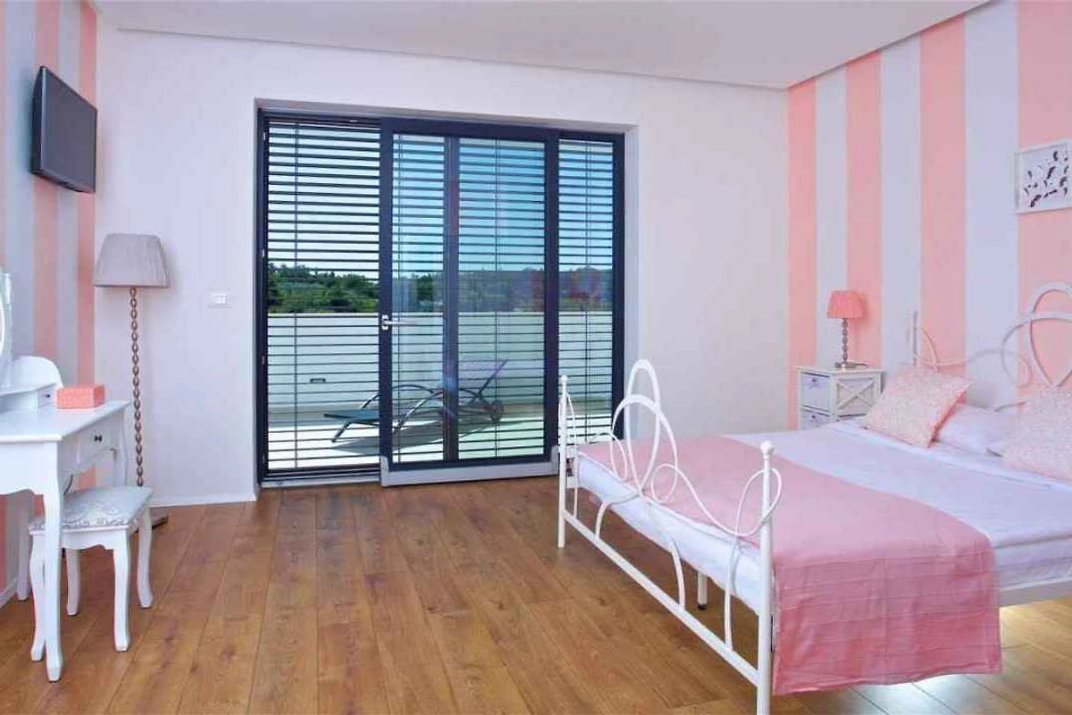 Villa, 2 Etagen, 6 Zimmer (davon 5 Schlafzimmer), 370 qm, insgesamt 12 Betten (davon 2 Zusatzbetten).