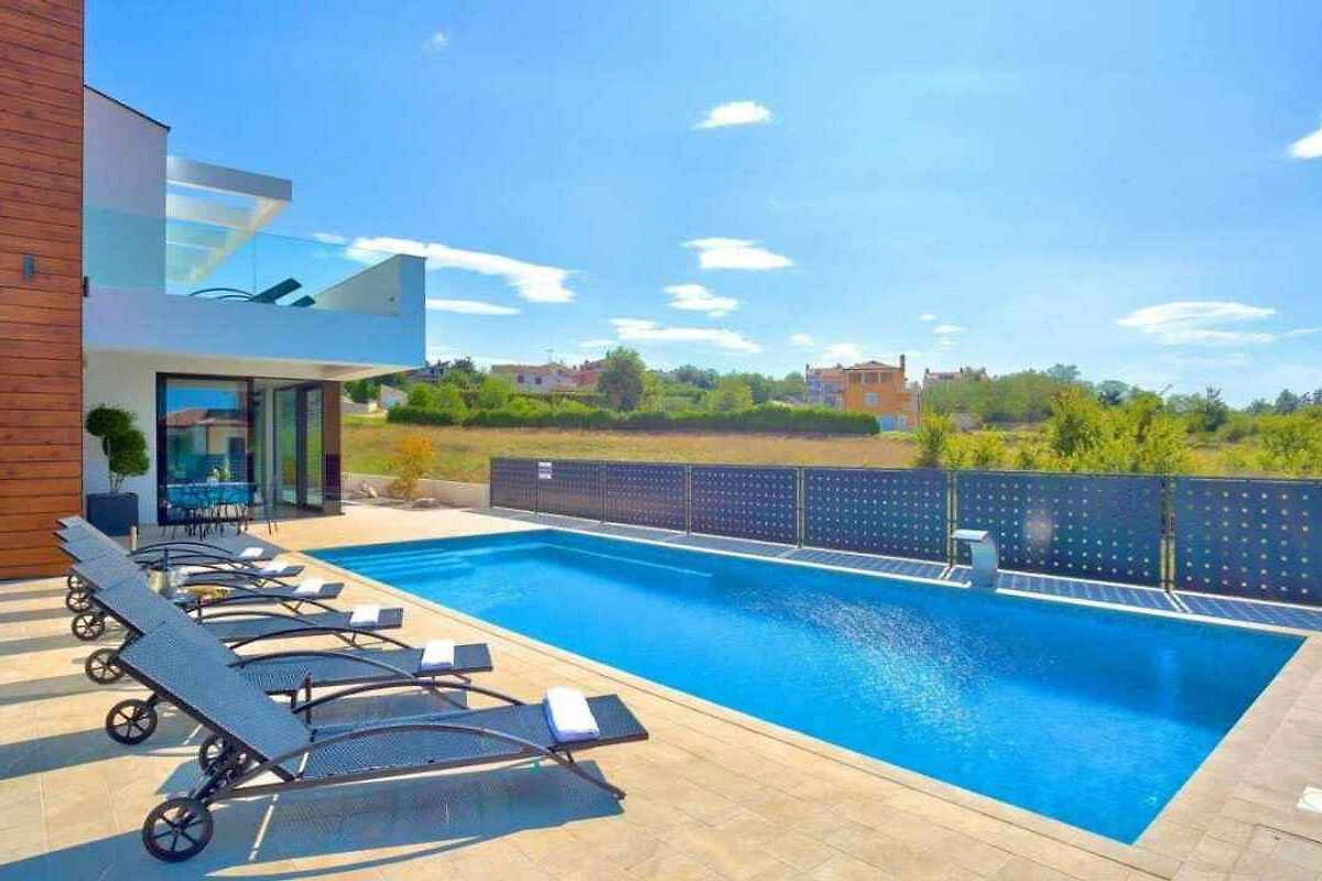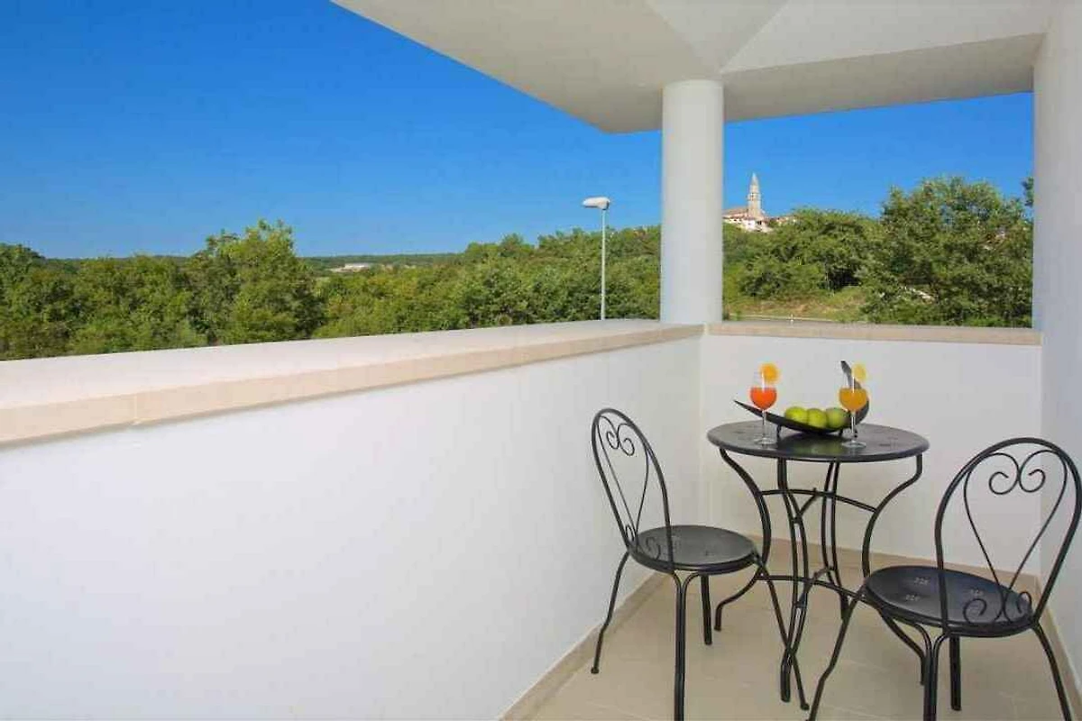 Višnjan. Die Villa befindet sich auf einem geschlossenen Gartengrundstück, von einem Zaun begrenzt. Parkplatz (für 3 Pkws) auf dem Grundstück.