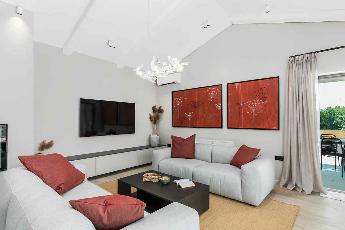Die einzeln stehende Villa ist modern und luxuriös eingerichtet. Das Grundstück befindet sich in einer Ferienhaus-Siedlung, am Ortsrand. Auch wegen der sonnigen Lage ist das Domizil beliebt. Zur alleinigen Nutzung stehen zur Verfügung: Sonnenschirm, Sonnenliege, Gartendusche, Grillmöglichkeit, Terrasse, Gartenmöbel und Hof. Multisport-Spielplatz zur gemeinsamen Nutzung in der Nähe der Villa.