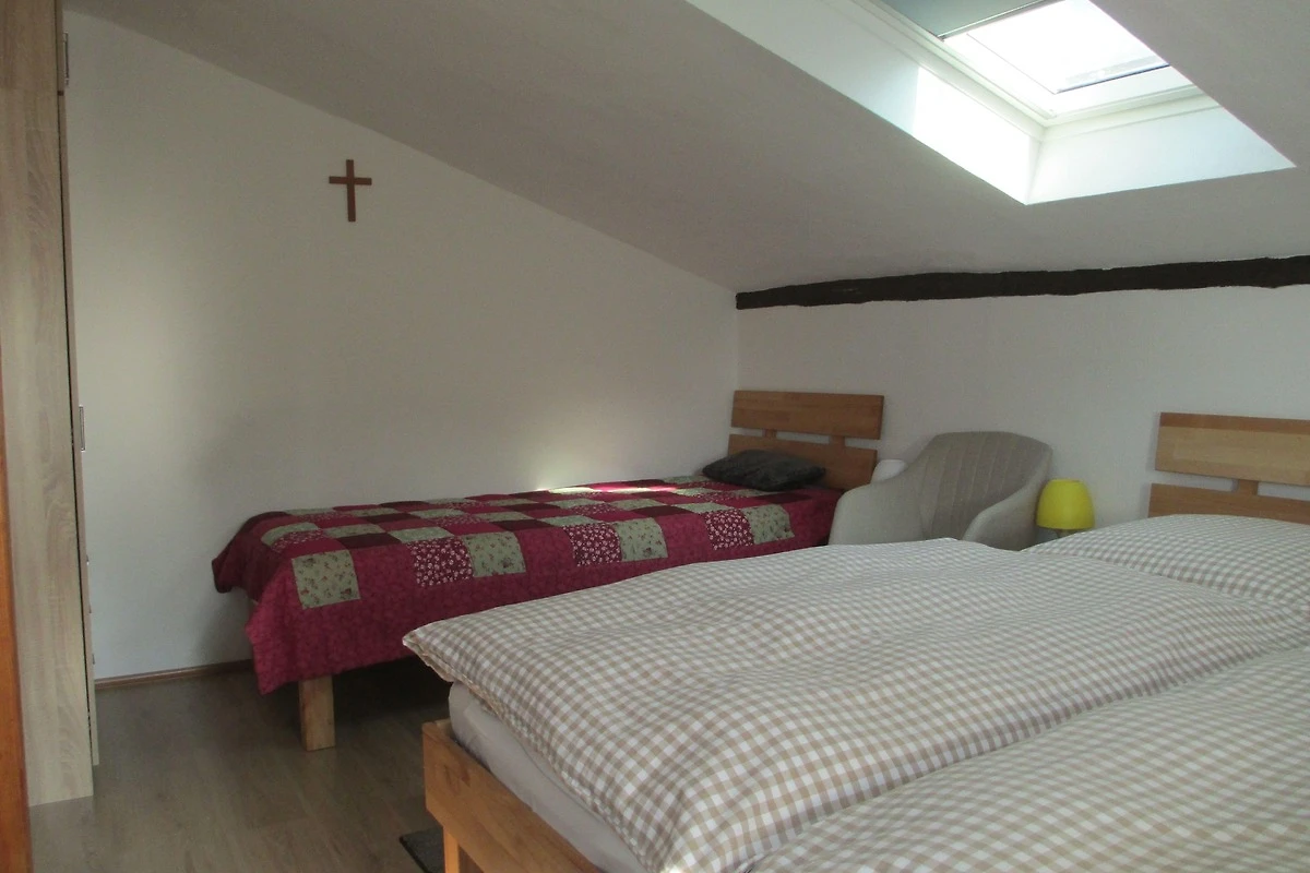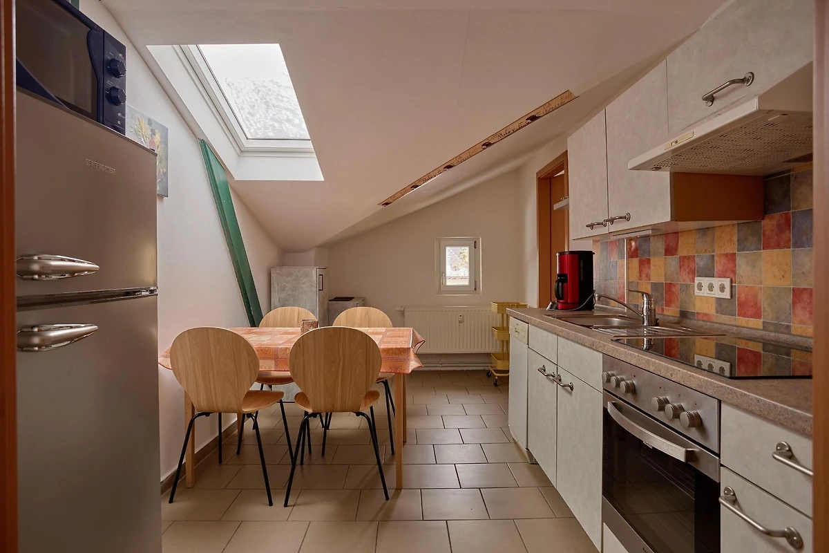 2. OG, KEIN Aufzug , Schlafzimmer und Küche mit Dachschrägen.