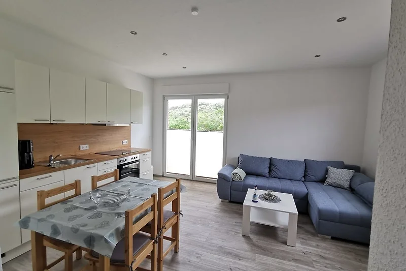 Geniessen Sie Ihre Ferien in vollen Zügen, bei schönem Wetter auch gerne draussen auf der Terrasse. Die gut ausgestattete Küche besitzt unter anderem einen Kühlschrank, einen Herd zum Kochen und sogar eine Spülmaschine.