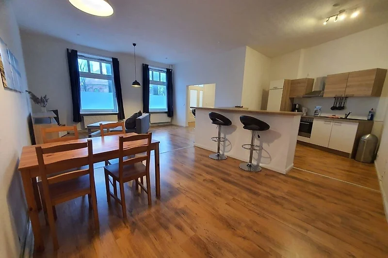 Die Wohnung hat 3 Zimmer und ist mit 3 komfortablen Einzelbetten und einem Doppelbett, Kleiderschränken, Stühlen und Tisch, Sofa, W-Lan sowie TV eingerichtet.