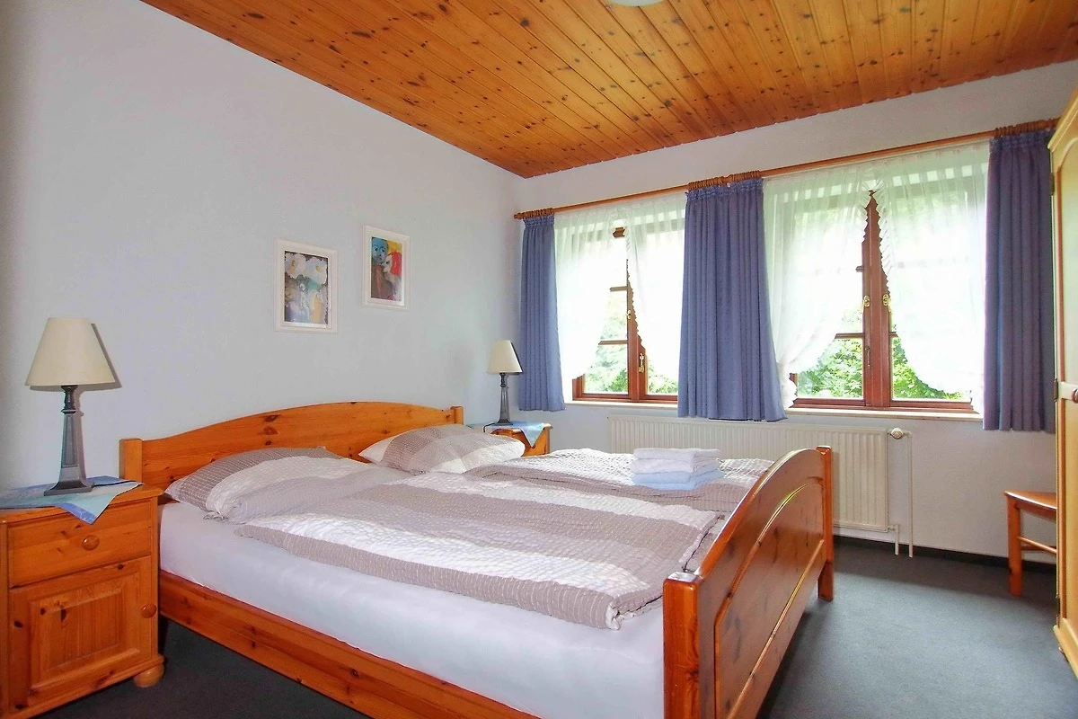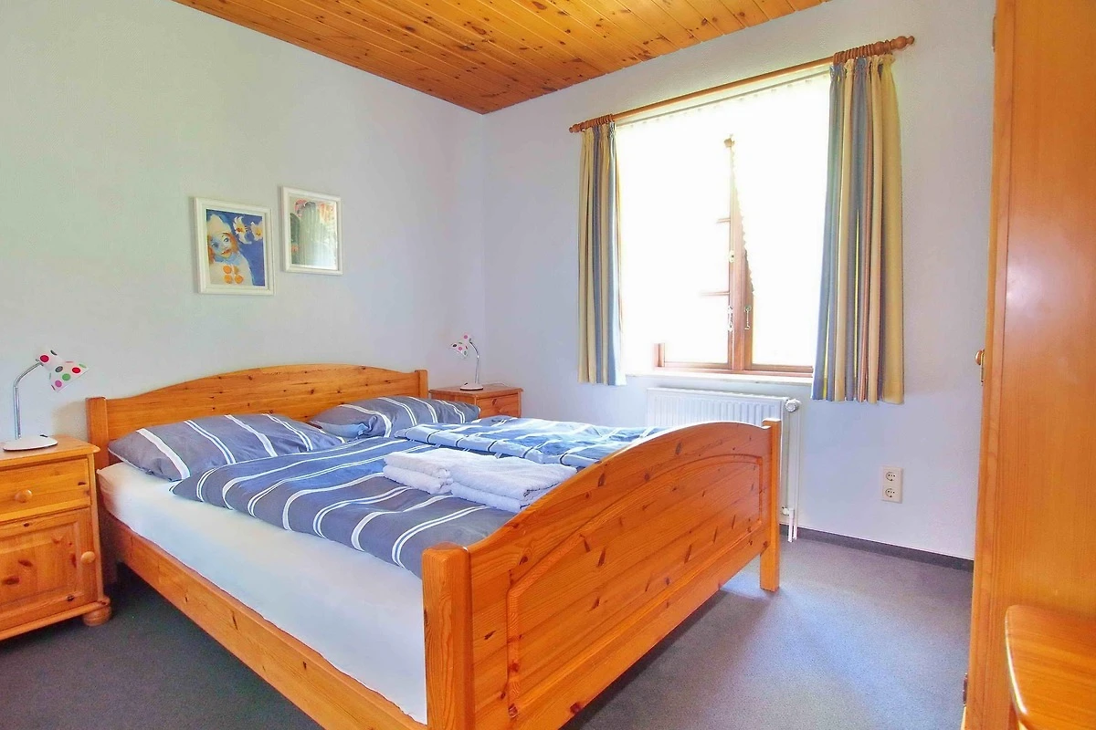 Unsere familienfreundliche eingerichtete Ferienwohnung ist komplett ausgestattet mit 2 Schlafzimmern die über Doppelbetten verfügen, einer Küche mit Essbereich und einem Bad. Das geräumige Wohnzimmer mit angrenzender Küche lädt zu gemütlichen Abendstunden ein. Ein Einzelbett im Wohnzimmer bietet zudem einer 5. Person einen Schlafplatz.