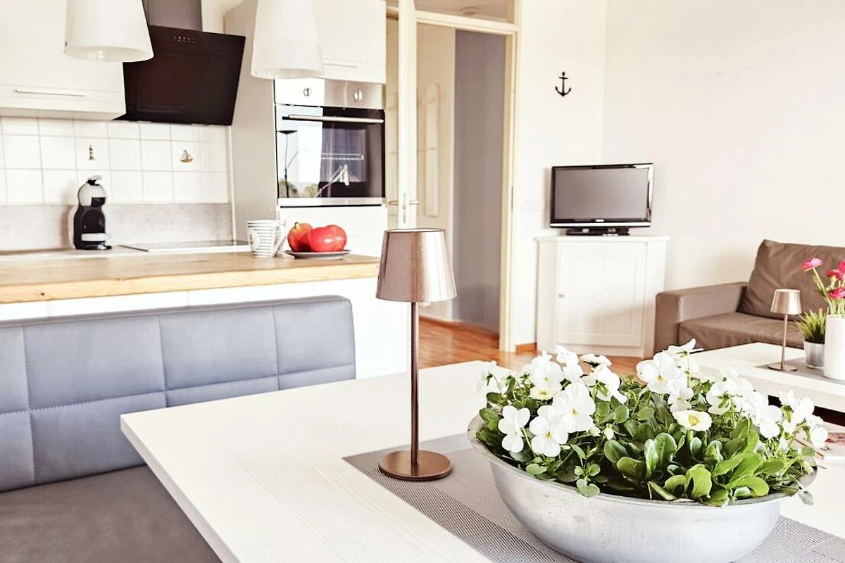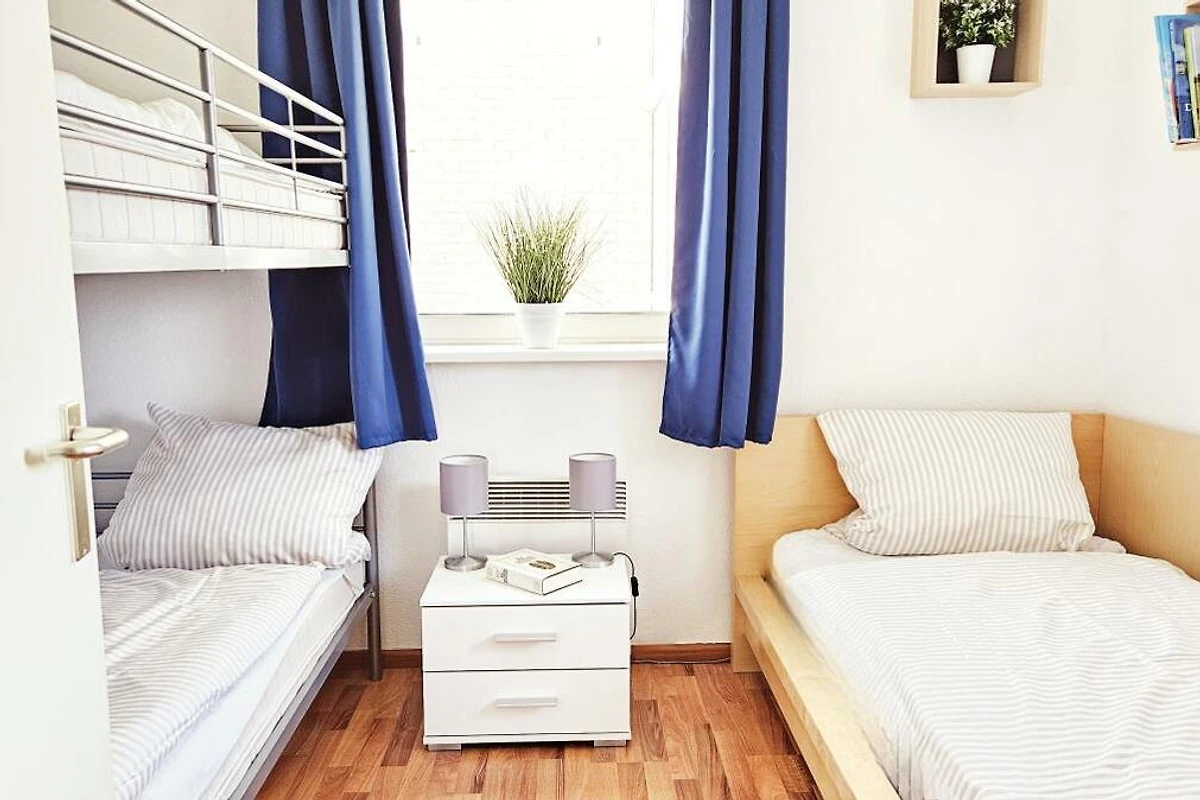 Die helle und freundliche Ferienwohnung Nr. 90 bietet Platz für bis zu fünf Personen. Sie verfügt über ein Schlafzimmer mit einem komfortablen Doppelbett sowie ein zweites Schlafzimmer mit einem Einzelbett und einem Stockbett, ideal für Kinder oder Freunde. Für Familien stehen zudem ein Reisebett, ein Hochstuhl und ein Tripp Trapp zur Verfügung. Das moderne Badezimmer ist mit einer Dusche ausgestattet, zudem gibt es ein separates WC.