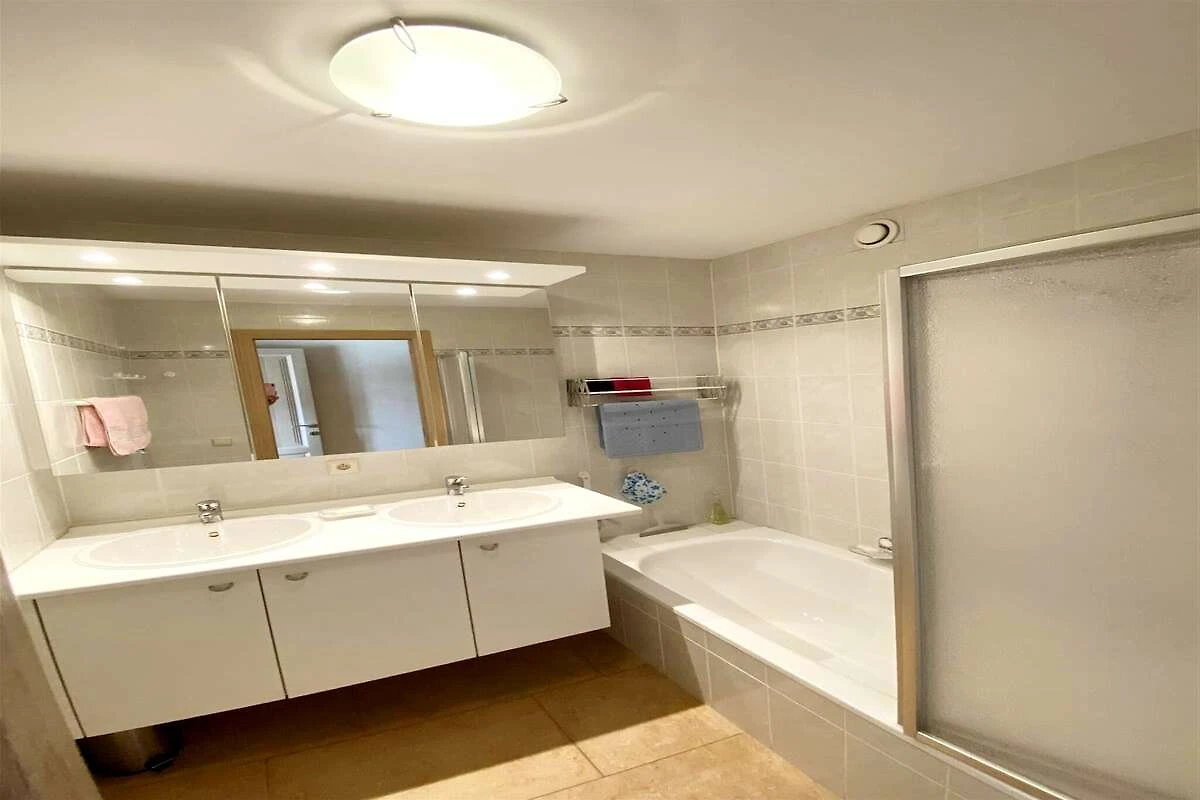Neben der erstklassigen Lage bietet die Wohnung eine voll ausgestattete Küche mit Kombi-Backofen, Kühlschrank mit Gefrierfach, Geschirrspüler und Kaffeemaschine – ideal zum Zubereiten von Mahlzeiten oder zum Genießen einer Tasse Kaffee. Das Badezimmer ist mit Badewanne und Dusche ausgestattet und ein separates WC sorgt für zusätzlichen Komfort. Dieses gepflegte Anwesen bietet alles, was Sie für einen erholsamen Aufenthalt benötigen.