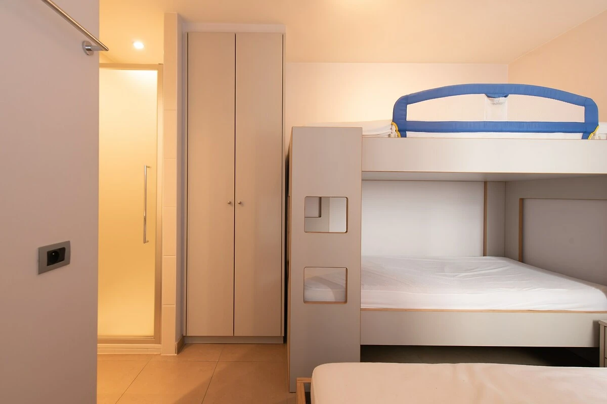 In der 4. Etage: (offene Küche(Wasserkocher, Toaster, Kaffeemaschine(pads), Backofen, Mikrowelle, Spülmaschine, Kühl-/Gefrierkombination, Mixer), Wohn/Esszimmer(TV(digital), Esstisch, Sitzecke, DVD-Spieler, Radio), Schlafzimmer(Etagenbett(Bettdecke, 90 x 200 cm)), Schlafzimmer(Doppelbett(Doppelbettdecke, 160 x 200 cm)), Schlafzimmer(Einzelbett(Bettdecke, 90 x 200 cm), Einzelbett(Bettdecke, 90 x 200 cm)), Badezimmer(Dusche, Waschbecken, Waschbecken), Toilette(Waschbecken, Toilette), Internet)