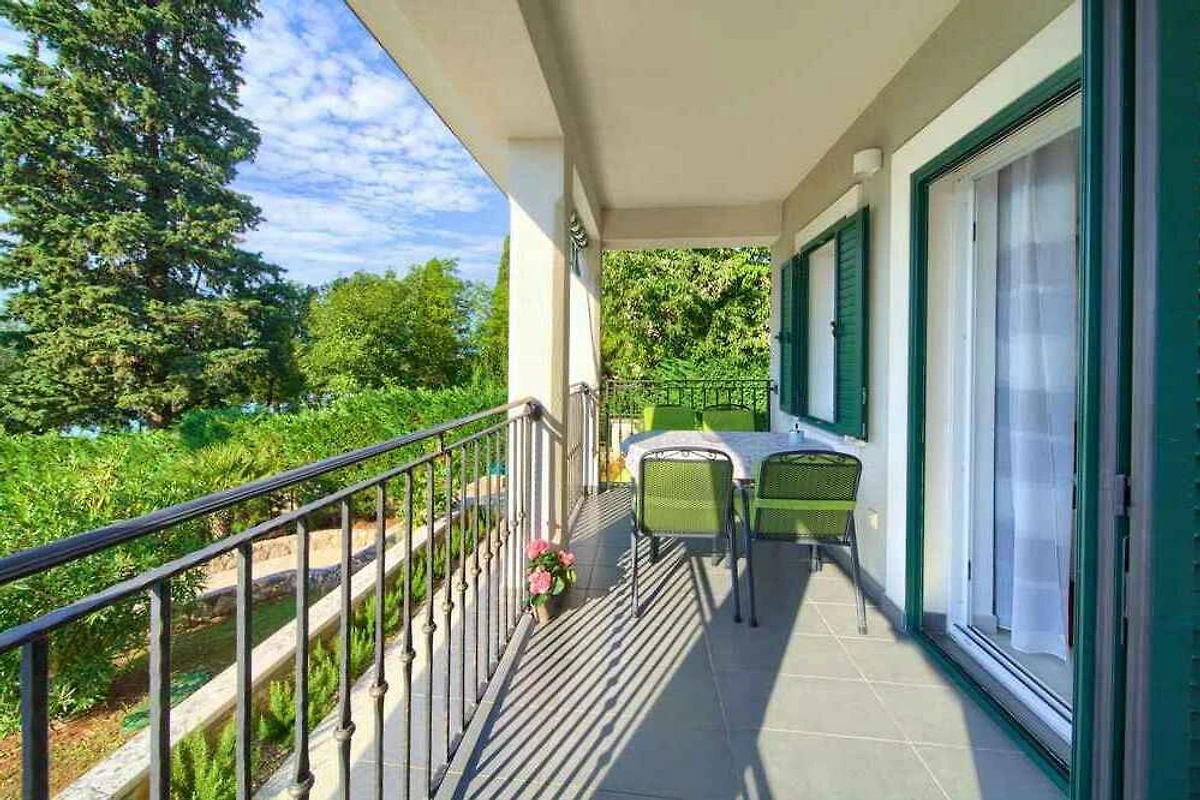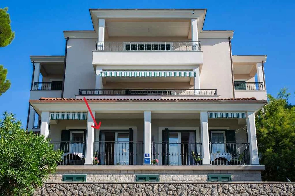 Malinska. Die Ferienwohnung befindet sich auf einem Gartengrundstück mit Wiese, Sträuchern und Bäumen. Der Vermieter wohnt nur zeitweise im Haus, nutzt jedoch einen separaten Eingang. In dem selben Objekt befindet sich auch KRK MAL 357 (4 Personen). Die Zufahrt erfolgt über eine Nebenstrasse. Parkplatz (für 1 Pkw) auf dem Grundstück.
