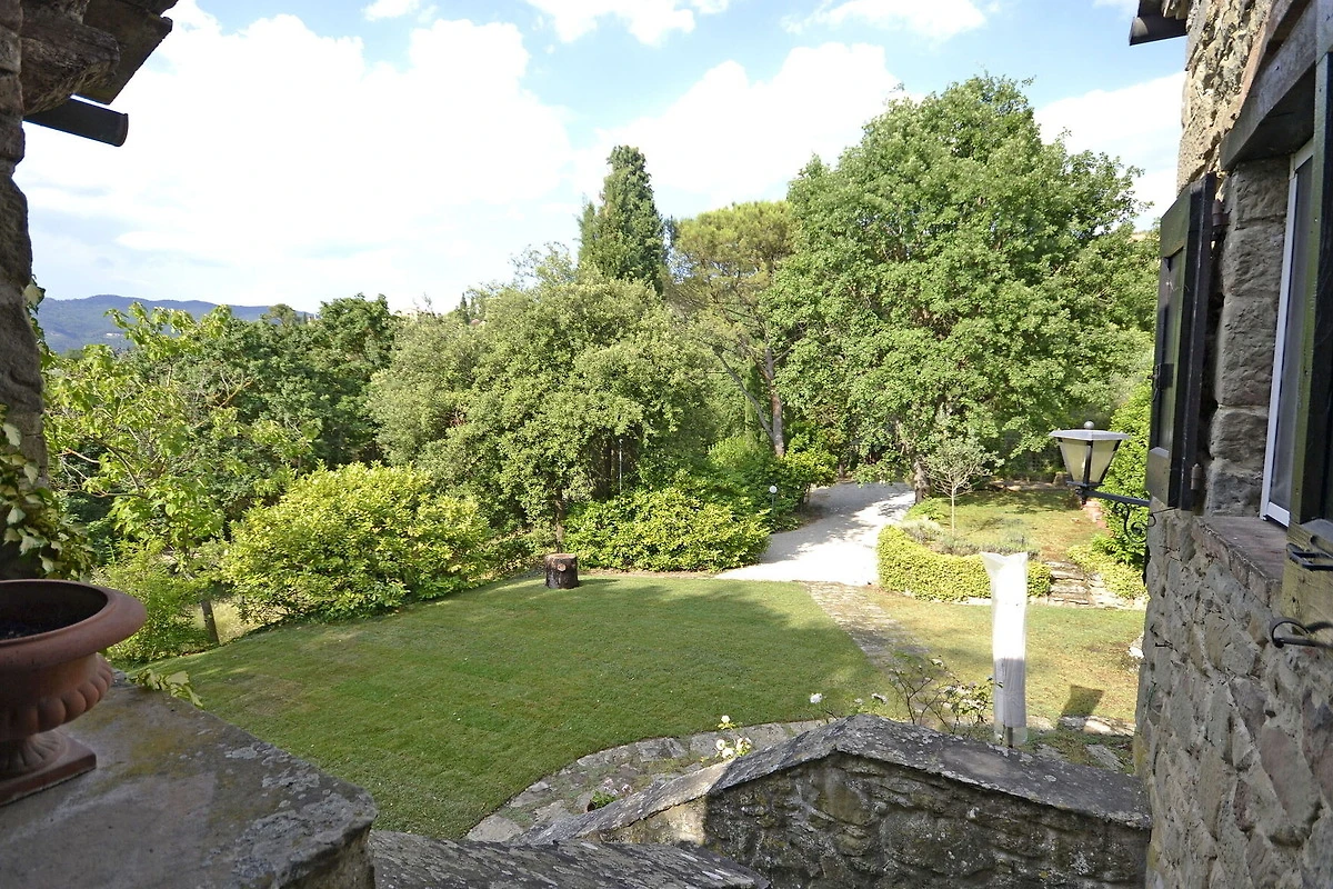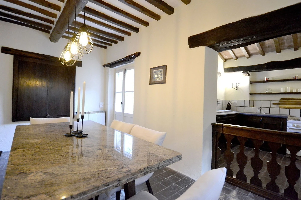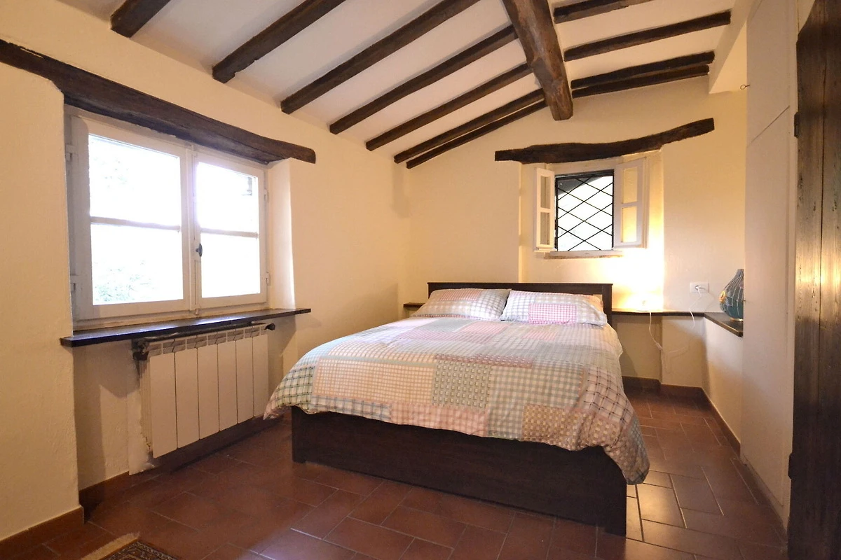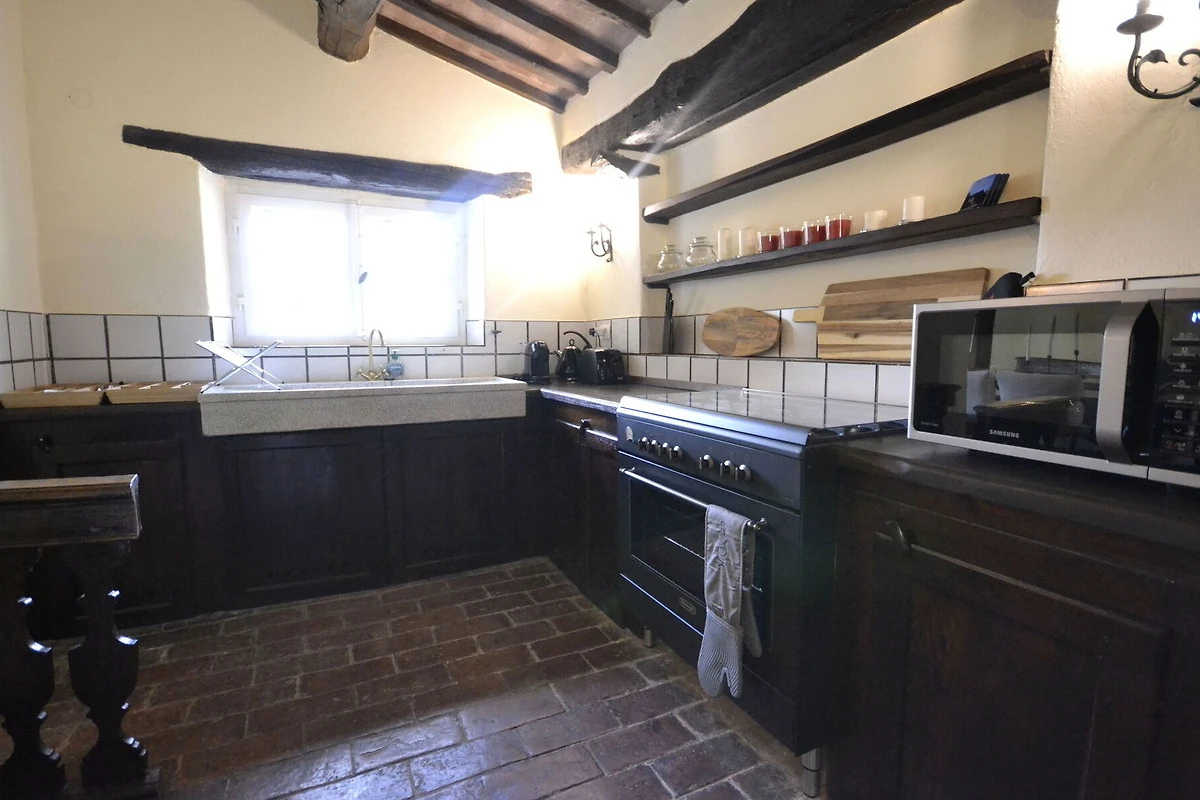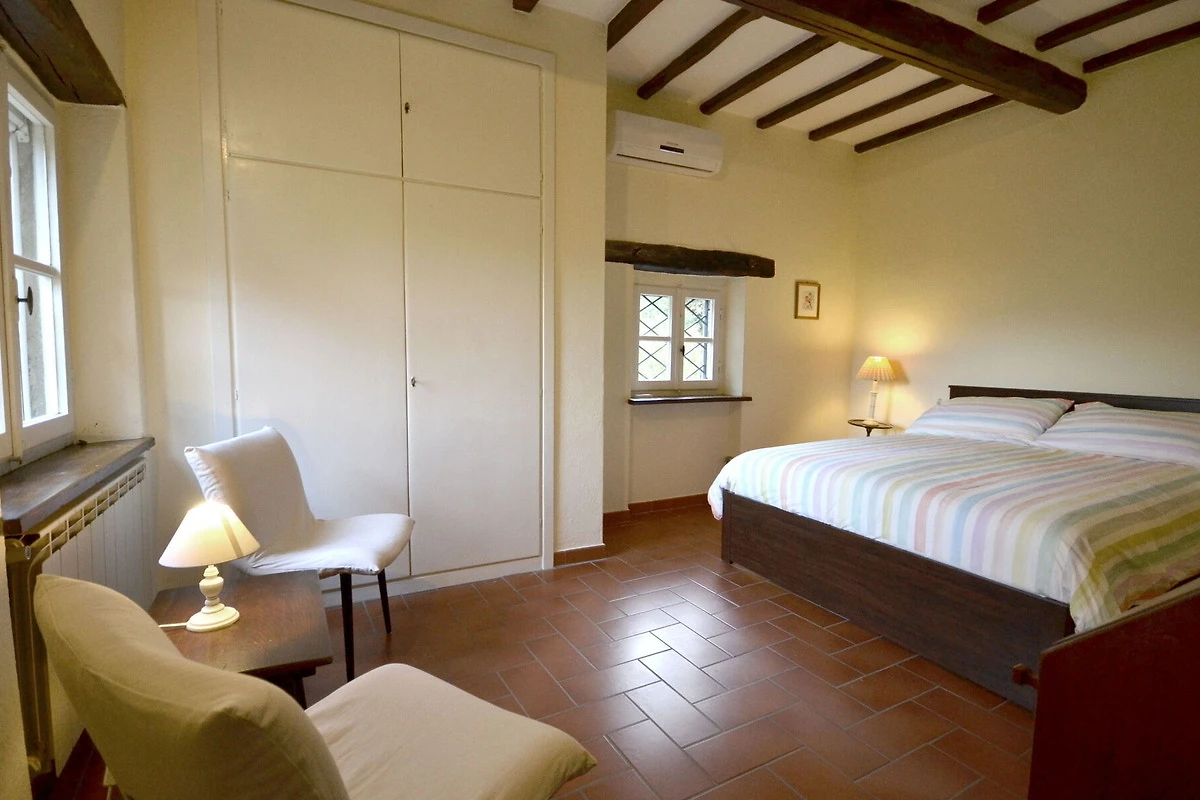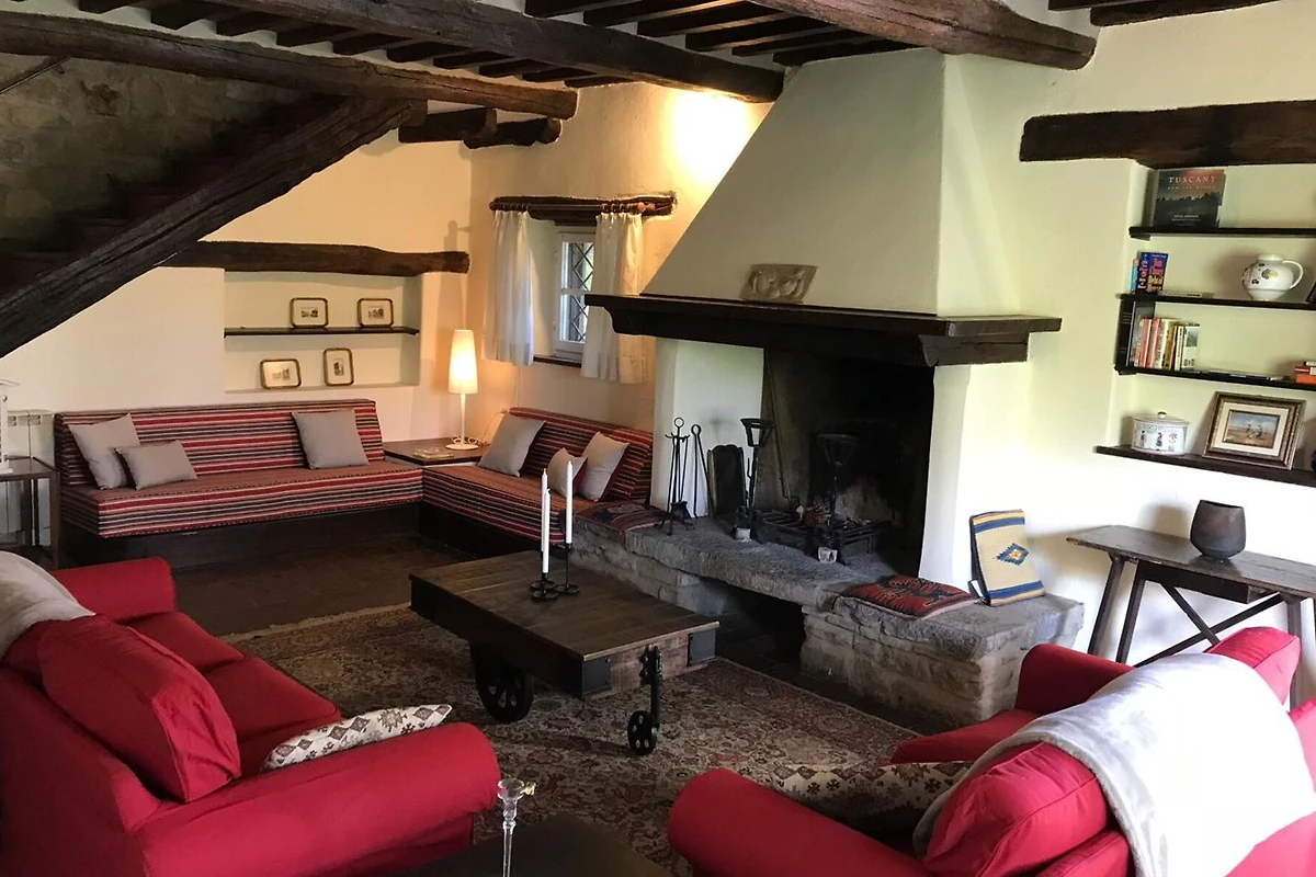Die Innenräume der Villa delle Fragole zeichnen sich durch Decken mit freiliegenden Holzbalken und Terrakottaböden aus, die an den rustikalen toskanischen Stil erinnern, der in der ganzen Welt bekannt ist. Die Villa erstreckt sich über zwei Etagen, die durch eine interne Holztreppe und eine schöne Aussentreppe aus Stein verbunden sind, auf der sich eine charakteristische Loggia mit Panoramablick befindet. Das Erdgeschoss ist über zwei verschiedene Eingänge zugänglich: Der erste führt direkt in das grosse Wohnzimmer, das mit seinen grossen Fenstern und Ausgängen nach draussen sehr charmant und komfortabel ist. Das Wohnzimmer verfügt über Sofas, einen SAT-TV, Sitzmöglichkeiten, einen Kamin und einen Bereich, in dem Ihnen eine offene Bar zur Verfügung steht.
