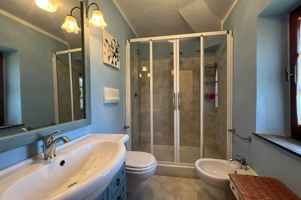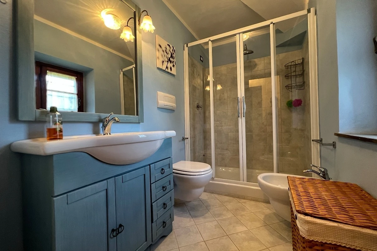 Die Villa Marconi kann bis zu 8 Personen beherbergen (3 Schlafzimmer + ein Schlafsofa). Es ist auf zwei Ebenen verbunden sowohl intern mit einer Wendeltreppe und auch durch eine externe Steintreppe.