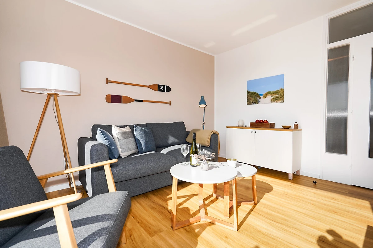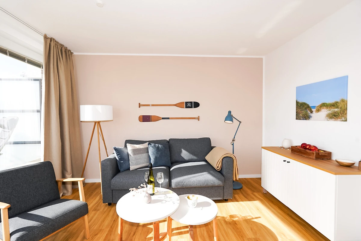 Diese Ferienwohnung bietet auf ca. 44 m² ein Wohnzimmer, ein Schlafzimmer und eine separate Küche mit ausreichend Platz für bis zu zwei Personen.