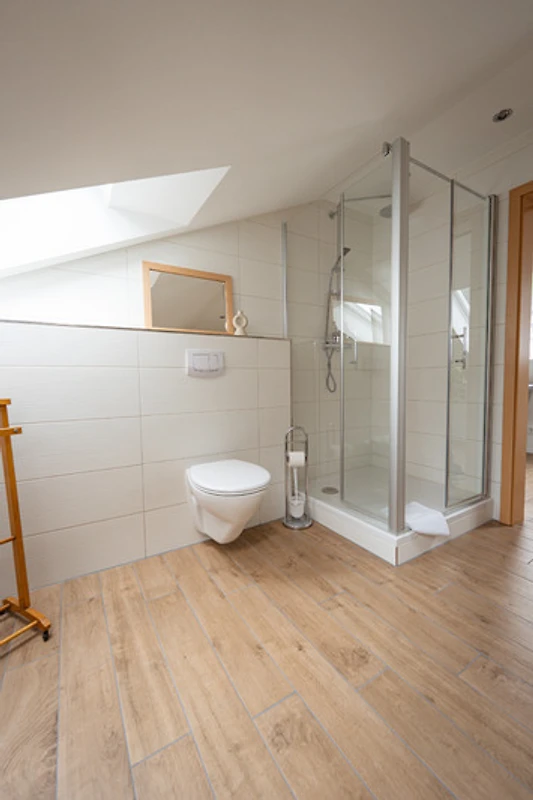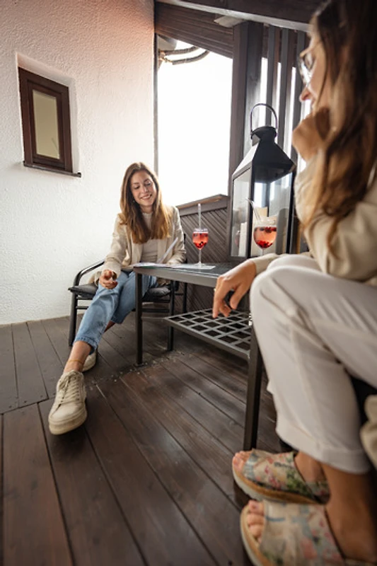 Neben deiner privaten Suite stehen dir auch ein gemütlicher Gemeinschaftsraum und eine voll ausgestattete Gemeinschaftsküche zur Verfügung. Im Sommer ist die grosse Infinity-Terrasse mit Gasgrill ein echtes Highlight – perfekt für gemeinsame Abende mit herrlichem Ausblick.