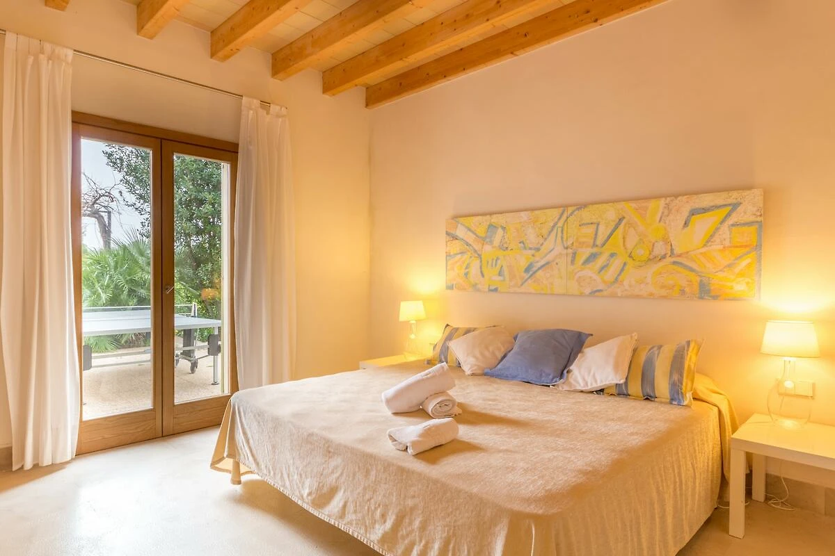 Das geräumige und moderne Landhaus Son Pusa I bietet die perfekte Mischung aus Komfort und Entspannung für bis zu 12 Gäste. Die Villa verfügt über 4 Doppelzimmer, 1 Vierbettzimmer, 3 Badezimmer und 2 Duschräume und bietet somit ausreichend Platz für eine große Gruppe oder Familie. Gäste genießen moderne Annehmlichkeiten wie Klimaanlage, Kamin, WLAN und Sat-TV. Der Außenbereich besticht durch einen glitzernden Salzwasserpool und einen üppigen Garten – ideal, um die mediterrane Sonne zu genießen. Ob Sie am Pool entspannen oder im Freien speisen – die ruhige Umgebung macht dieses Anwesen zu einer wahren Oase.