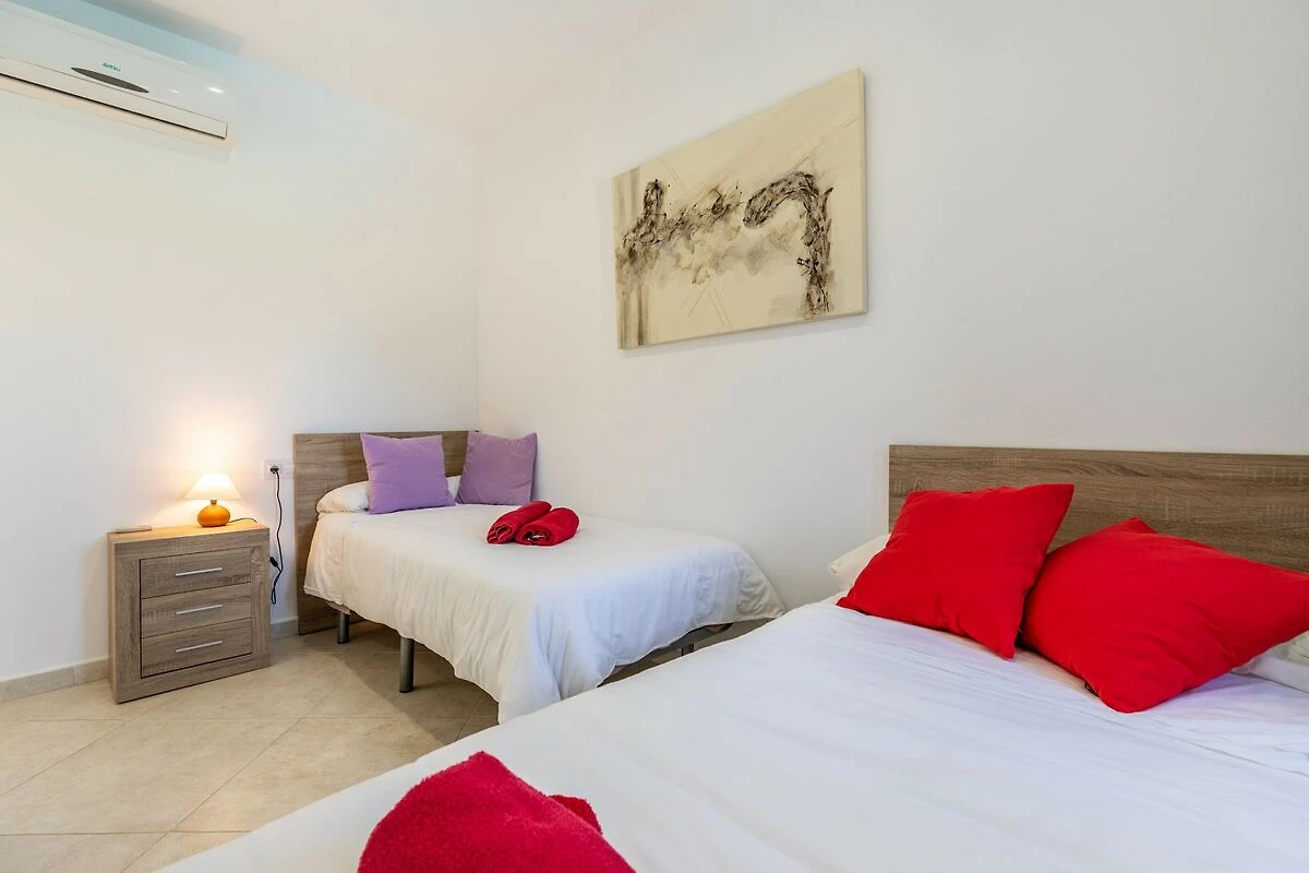 Küche(Kaffeemaschine, Backofen, Mikrowelle, Spülmaschine, Kühlschrank, Tiefkühlschrank, ), Wohn/Esszimmer(TV(Satellit), Esstisch, Sitzecke, Radio, Alarmanlage), Schlafzimmer(Einzelbett, Einzelbett, TV), Schlafzimmer(Einzelbett, Einzelbett), Schlafzimmer(Einzelbett, Einzelbett), Schlafzimmer(Einzelbett, Einzelbett), Badezimmer(Dusche), Badezimmer(Dusche), Badezimmer(Dusche), Internet, TV, Waschmaschine, Klimaanlage, Terrasse, Garten, Liegen, Grill, Parkplatz, Pool(alleinige Nutzung), Föhn