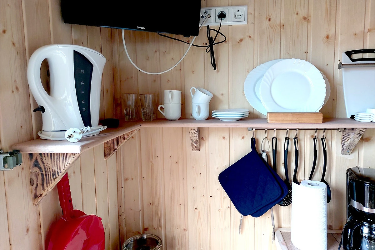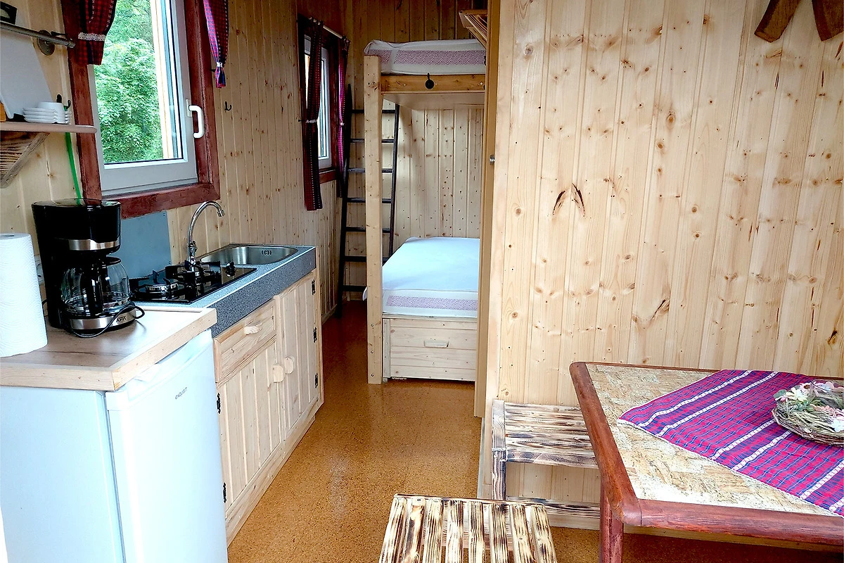 Es ist etwas ganz Aussergewöhnliches: Im "Hetzinger Bauwagen" geniesst du "Glamping" auf die besondere Art. Du schläfst trocken und warm im Doppelbett (Doppel-Etagenbett), profitierst von einer voll eingerichteten Küche und hast ein eigenes WC sowie Handwaschbecken. Setze dich bequem an Bank und Tisch und schau dabei fern. Duschen kannst du gegen ein kleines Entgelt in unseren Campingeinrichtungen, die nur ein paar Meter entfernt sind. Auf einer kleinen Terrasse stehen Sitzgelegenheiten für dich bereit. Ein Grill ist vorhanden. Sehr gerne kannst du deine eigene Bettwäsche und Handtücher mitbringen oder bei uns dazubuchen. Dein Fahrzeug parkst du am Objekt.