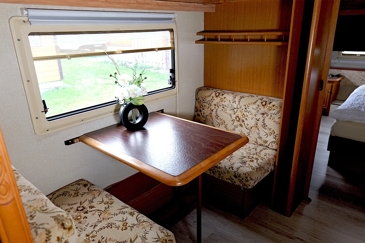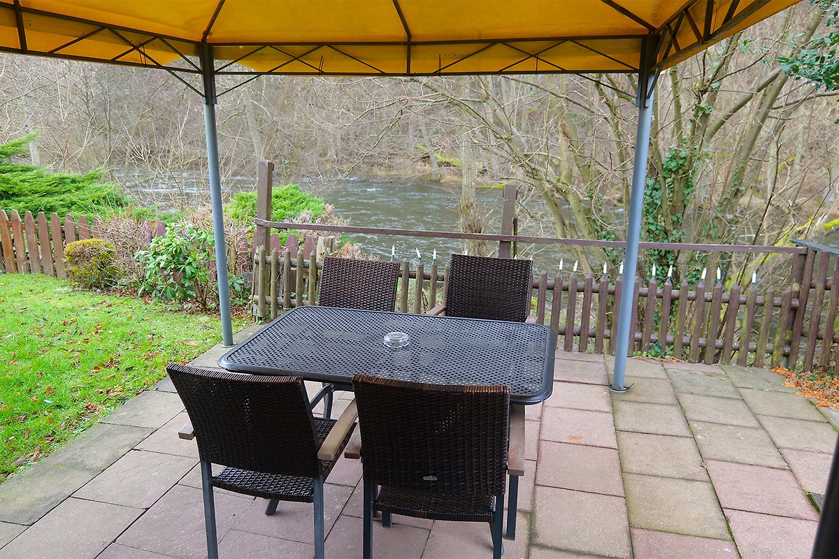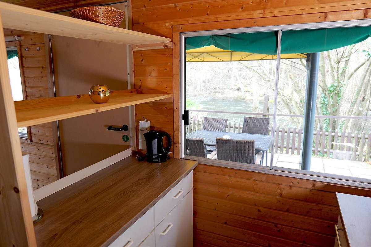 Es ist eines der Lieblingsobjekte unserer Gäste: Du stehst direkt an der Rur und schaust vom Garten hinunter auf das Wasser. Schlafen wirst du komfortabel im Wohnwagen. Es gibt dort zwei Doppelbetten, sodass vier Personen bequem übernachten können. Ein Kind kann gegebenenfalls zusätzlich in einer umklappbaren Sitzecke schlafen. Im ausgebauten Vorbau findest du eine Küche mit Essecke – komplett eingerichtet mit Koch- und Essgeschirr. Ein TV im Vorraum und ein weiteres im Wohnwagen gehören ebenfalls zur Einrichtung. Ein kleines Badezimmer mit WC, Dusche und Handwaschbecken sorgt für Wohlfühlatmosphäre. Eine Truma-Heizung im Vorraum und eine weitere im Anbau garantieren angenehme Temperaturen in der kalten Jahreszeit. Auf der Terrasse hast du Sitzgelegenheiten unter einem Pavillon und kannst grillen. Es gibt einen Garten und einen kleinen untiefen Teich. Das Grundstück ist eingefasst, sodass sich dein Hund dort frei bewegen kann. Über ein Gartentor und eine Treppe erreichst du den Ruruferweg. Dein Fahrzeug parkst du am Objekt. Sehr gerne kannst du deine eigene Bettwäsche und Handtücher mitbringen oder bei uns dazubuchen.