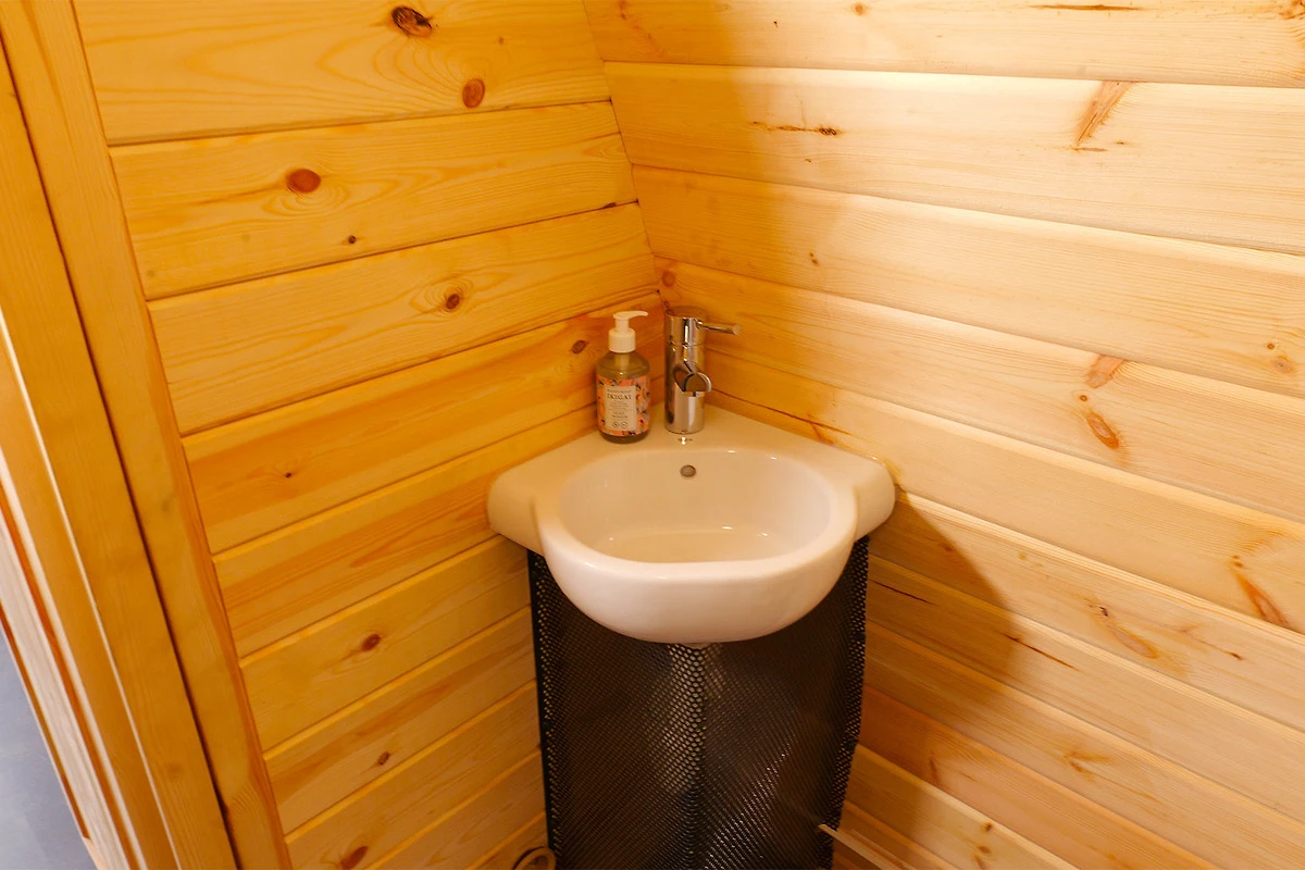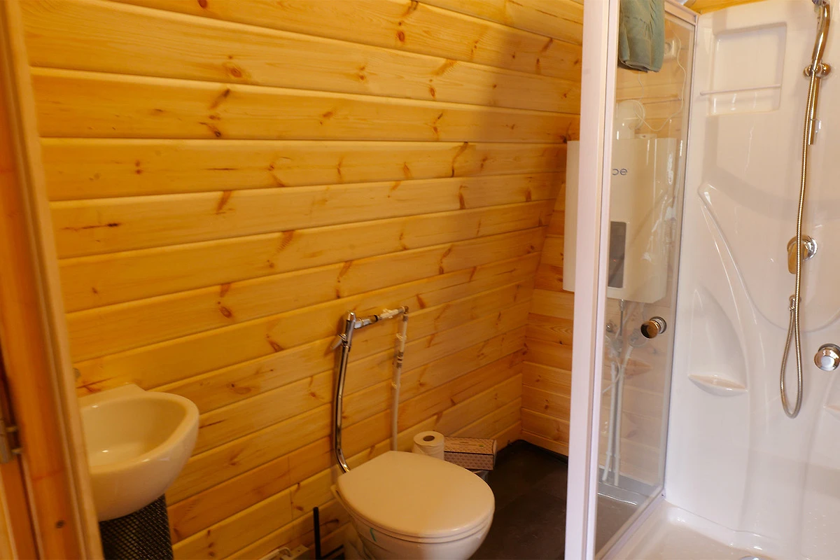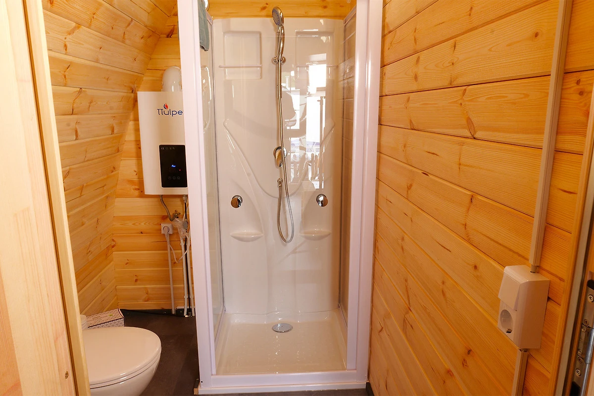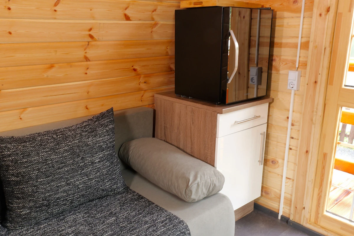 Egal, ob du dich frisch machen möchtest oder einfach nur entspannen willst – mit einer eigenen Dusche, einem WC und einem Handwaschbecken ist alles für dein Wohlbefinden vorhanden. Bei einem gemütlichen Zusammensitzen mit Couch und Tisch kannst du natürlich auch Fernsehen schauen.
