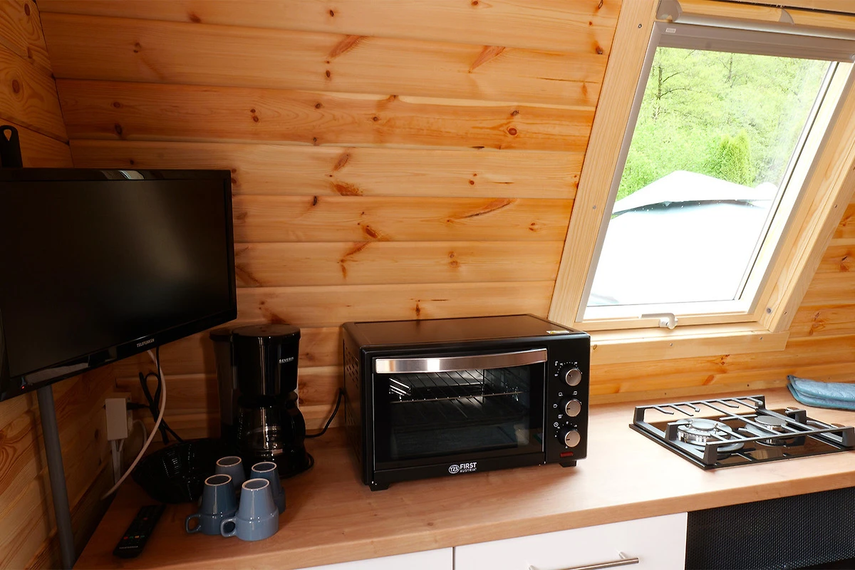 Willkommen in unserer neuesten Errungenschaft, der "Romantik-Laube" – ideal für ein unvergessliches Glamping-Abenteuer! Hier schläfst du bequem und warm in einem Doppelbett und geniesst den Komfort einer voll ausgestatteten Küche.