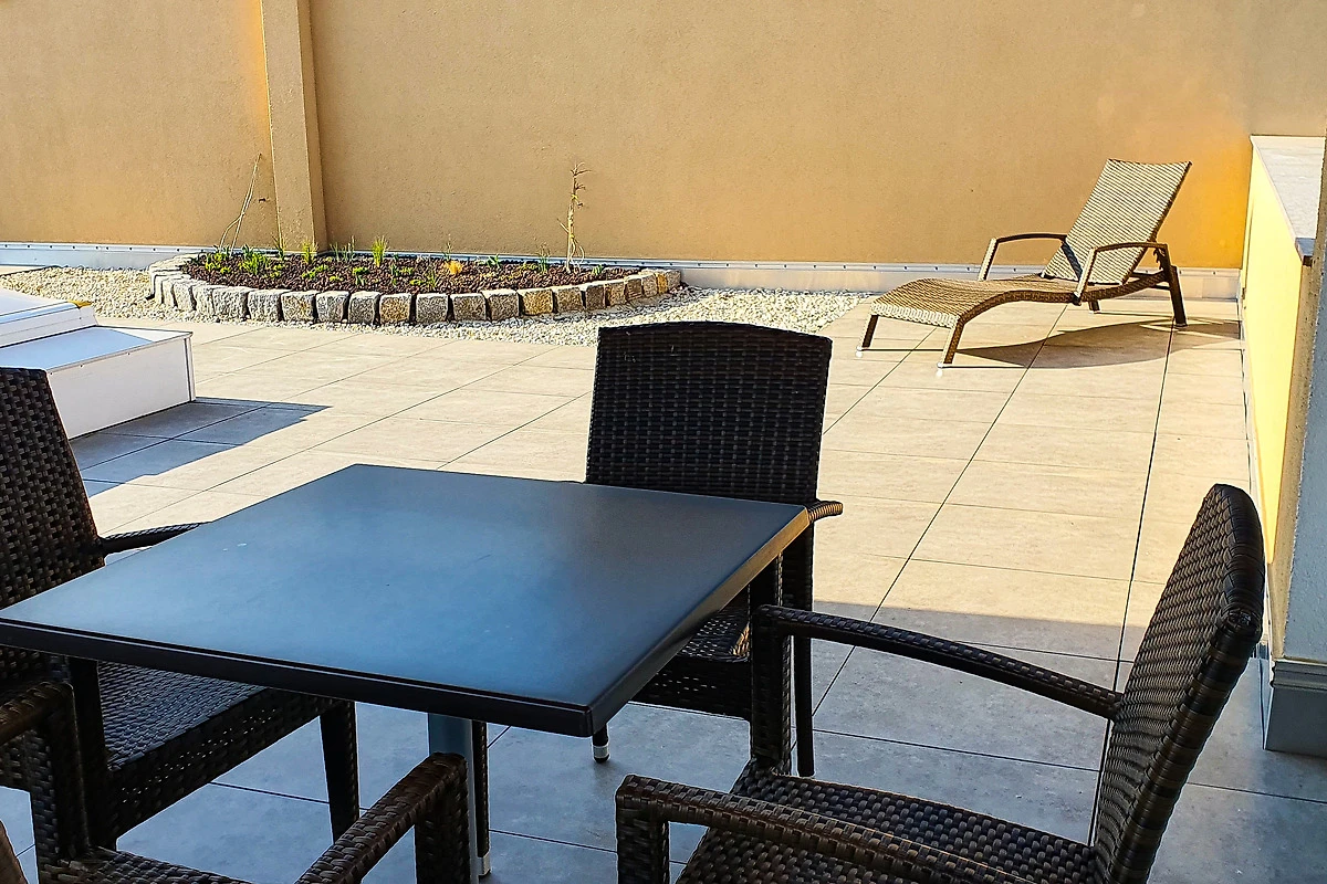 - Terrasse mit Sitzmöbeln (keine Auflagen vorhanden!)